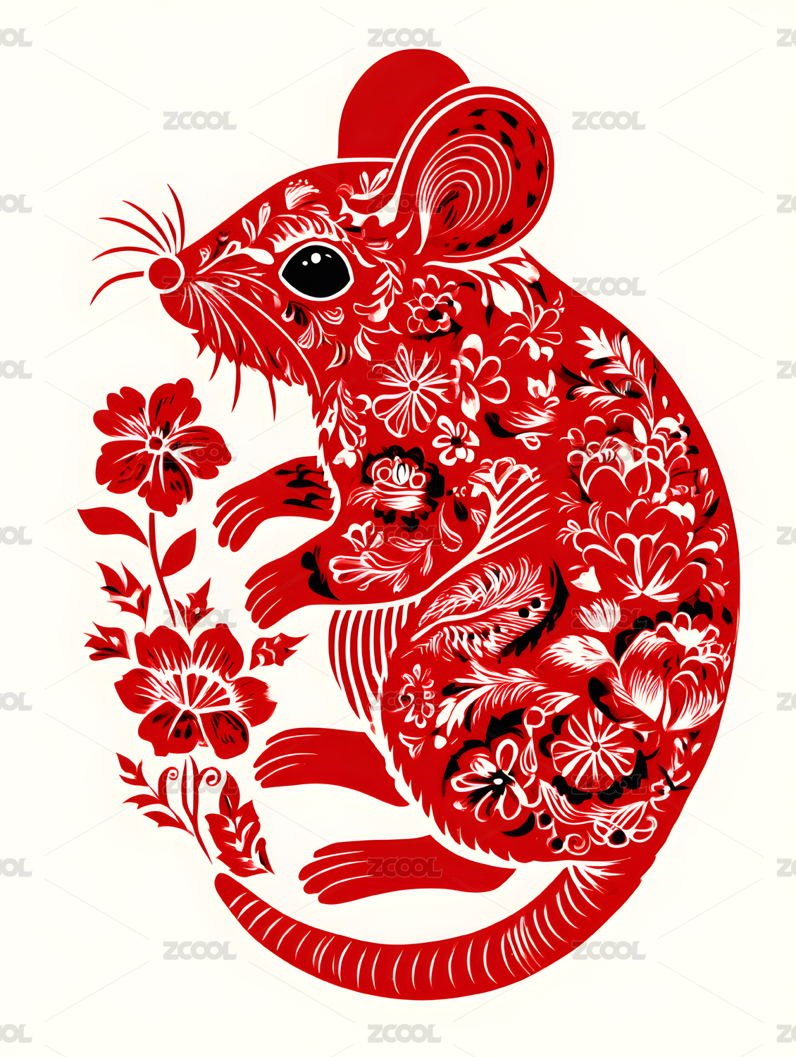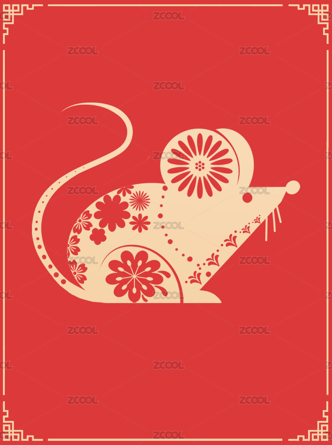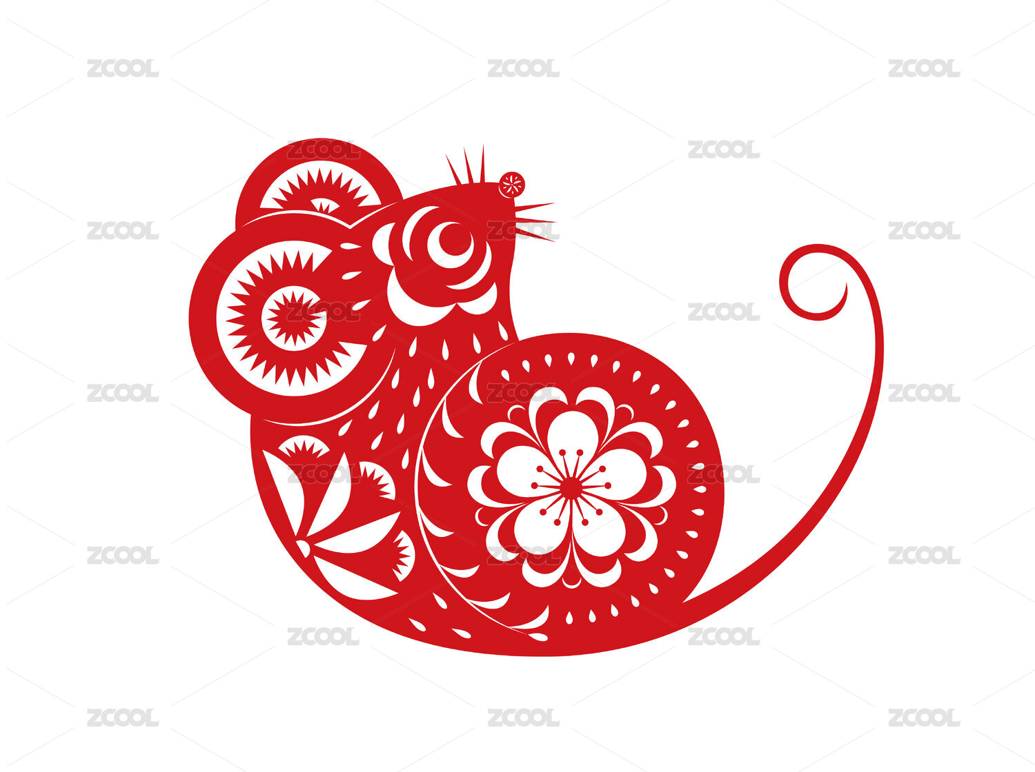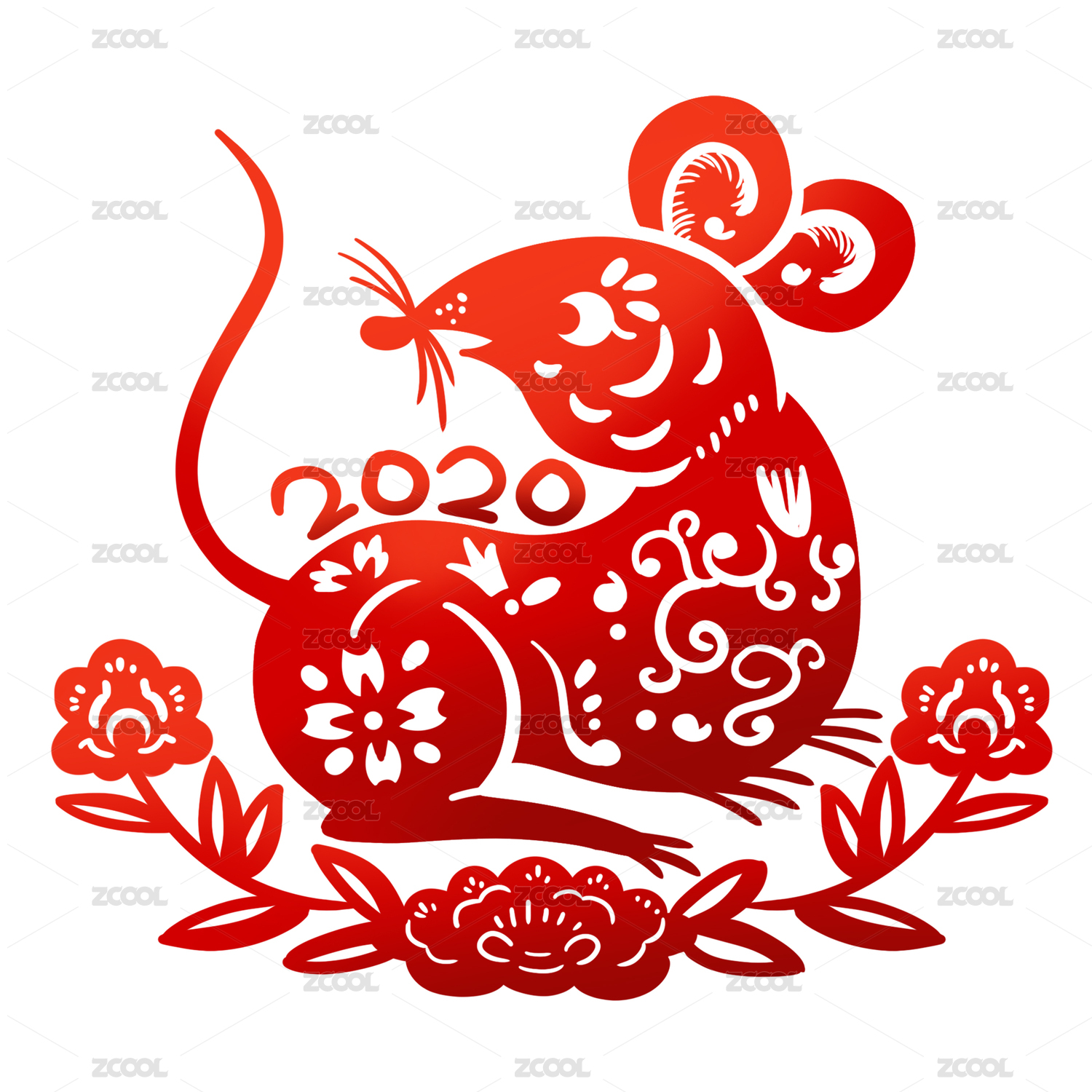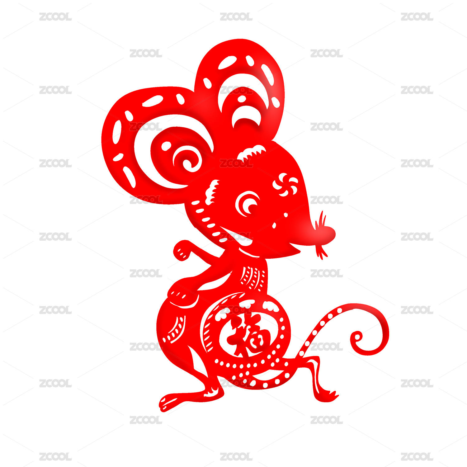 中国风,剪纸,窗花,红色,矢量图,鼠年,2020,扁平,福,HEBTHXC