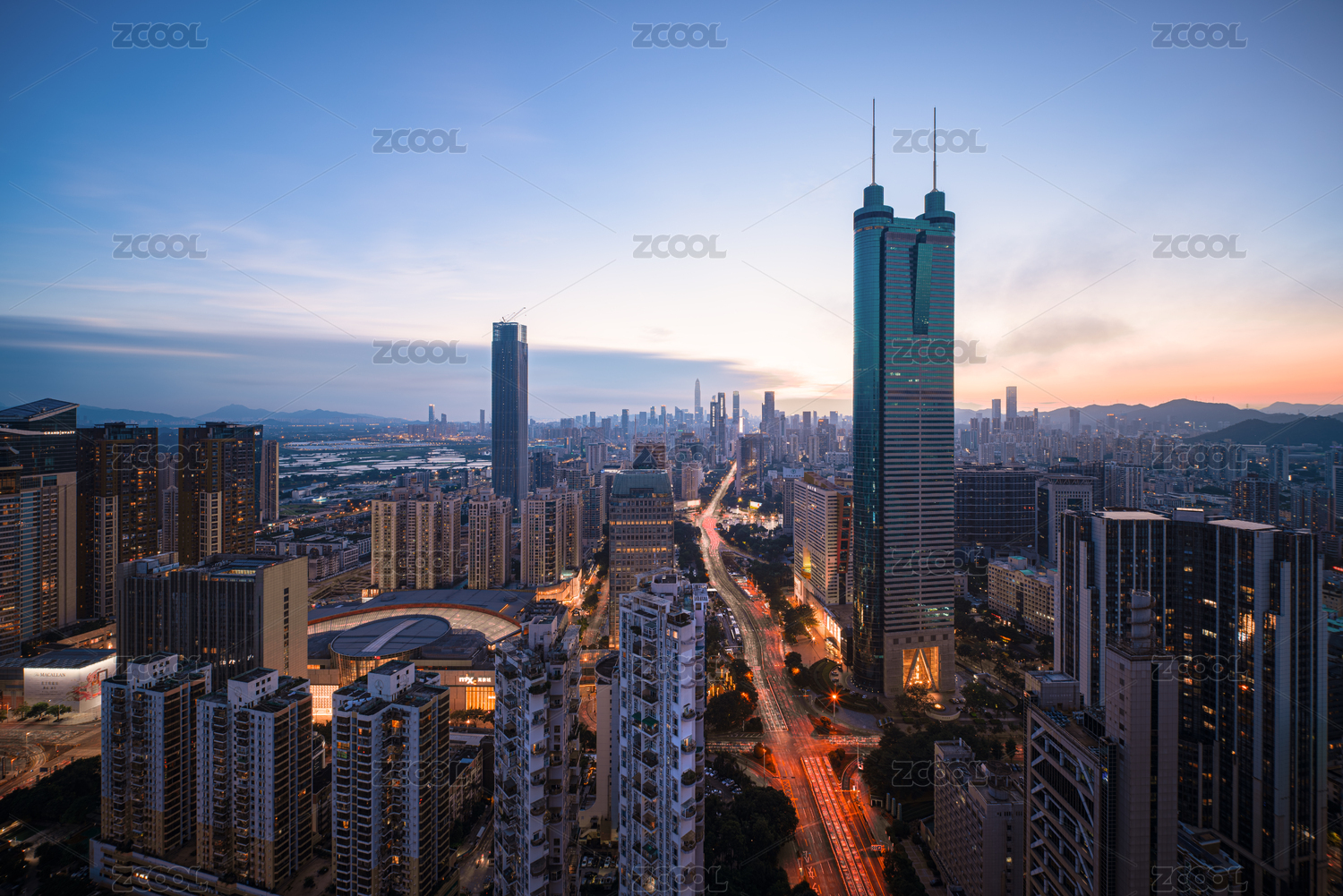 中国深圳市深圳罗湖区地王大厦傍晚时分