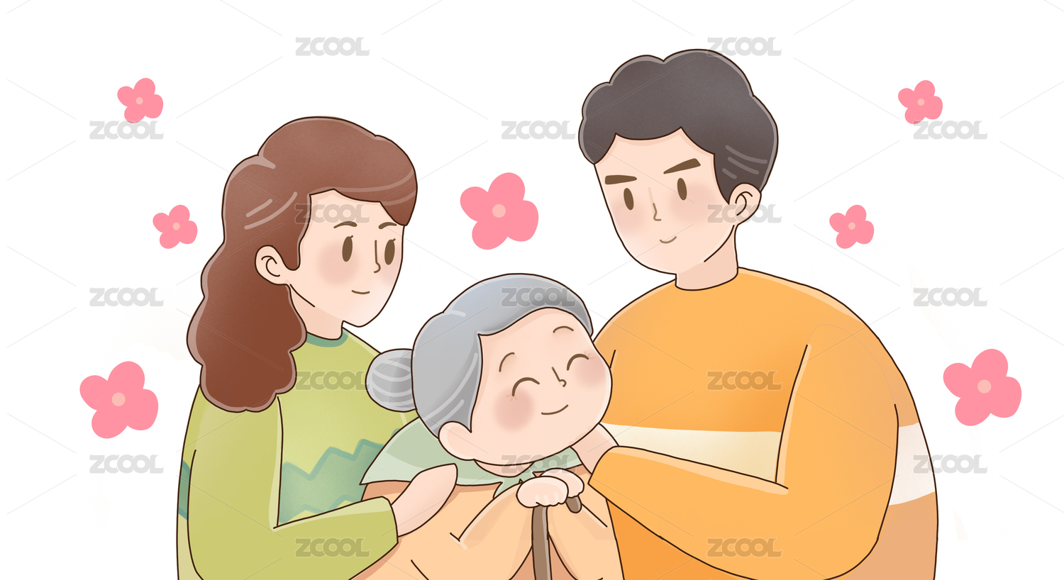 卡通重阳节亲子团圆家人关爱老人矢量插画