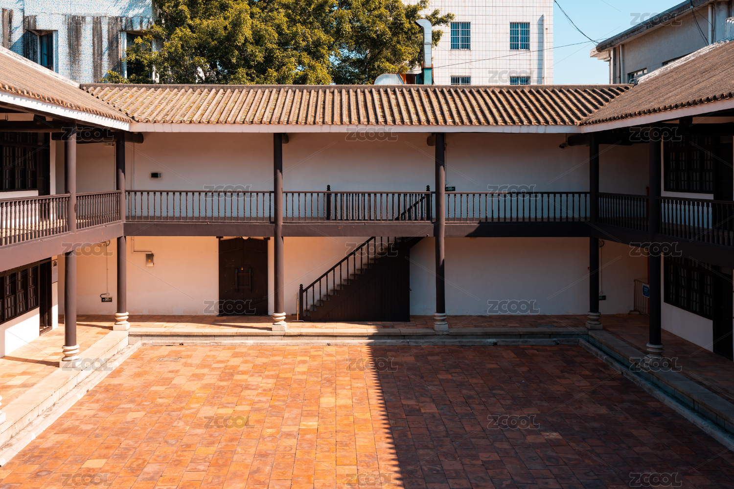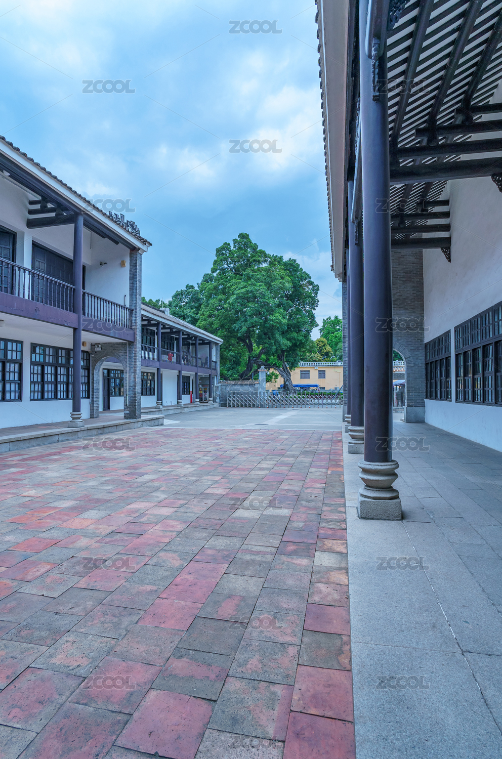 广州长洲岛黄埔军校旧址传统中式庭院水池