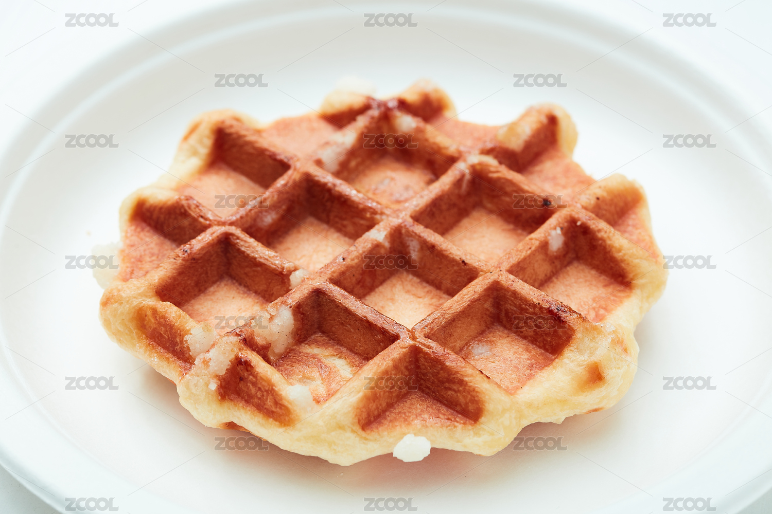 浅色背景上餐盘里摆放的华夫饼