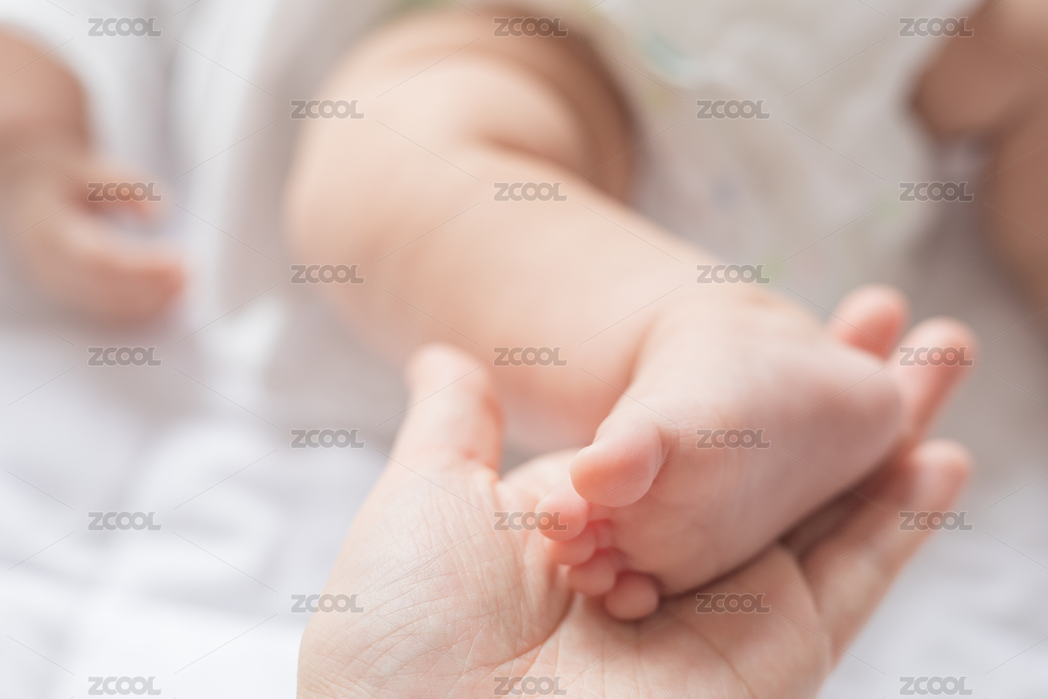 父亲节母亲节母亲用手掌托住新生婴儿的双脚