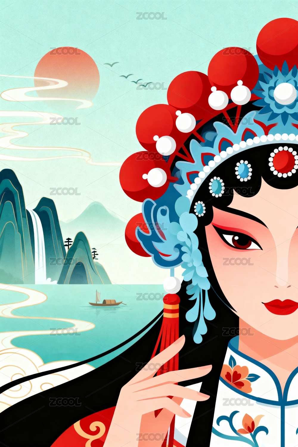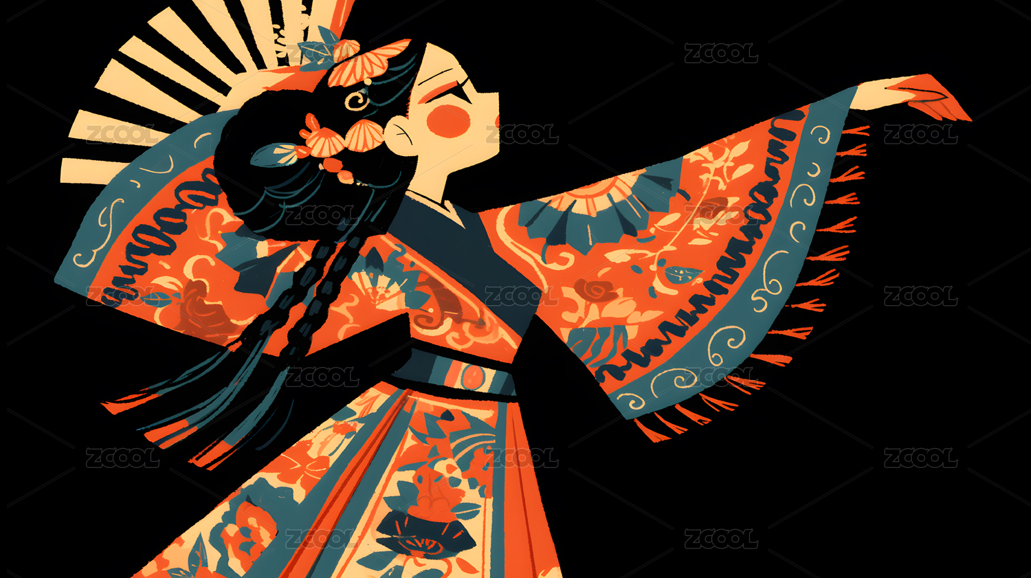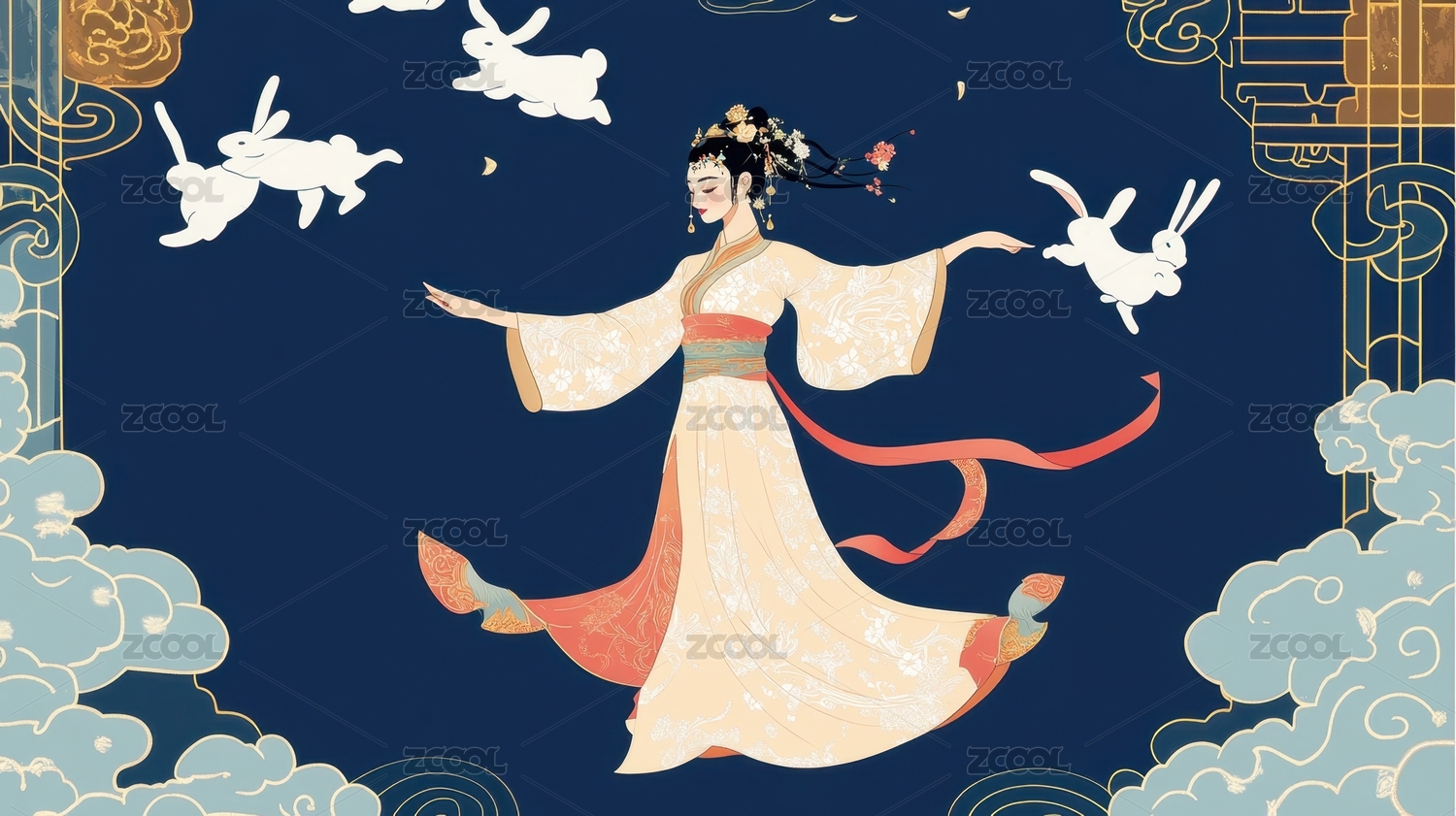 唐朝敦煌宫殿祥云牡丹奏乐舞蹈飞天伎乐藻井花纹插画