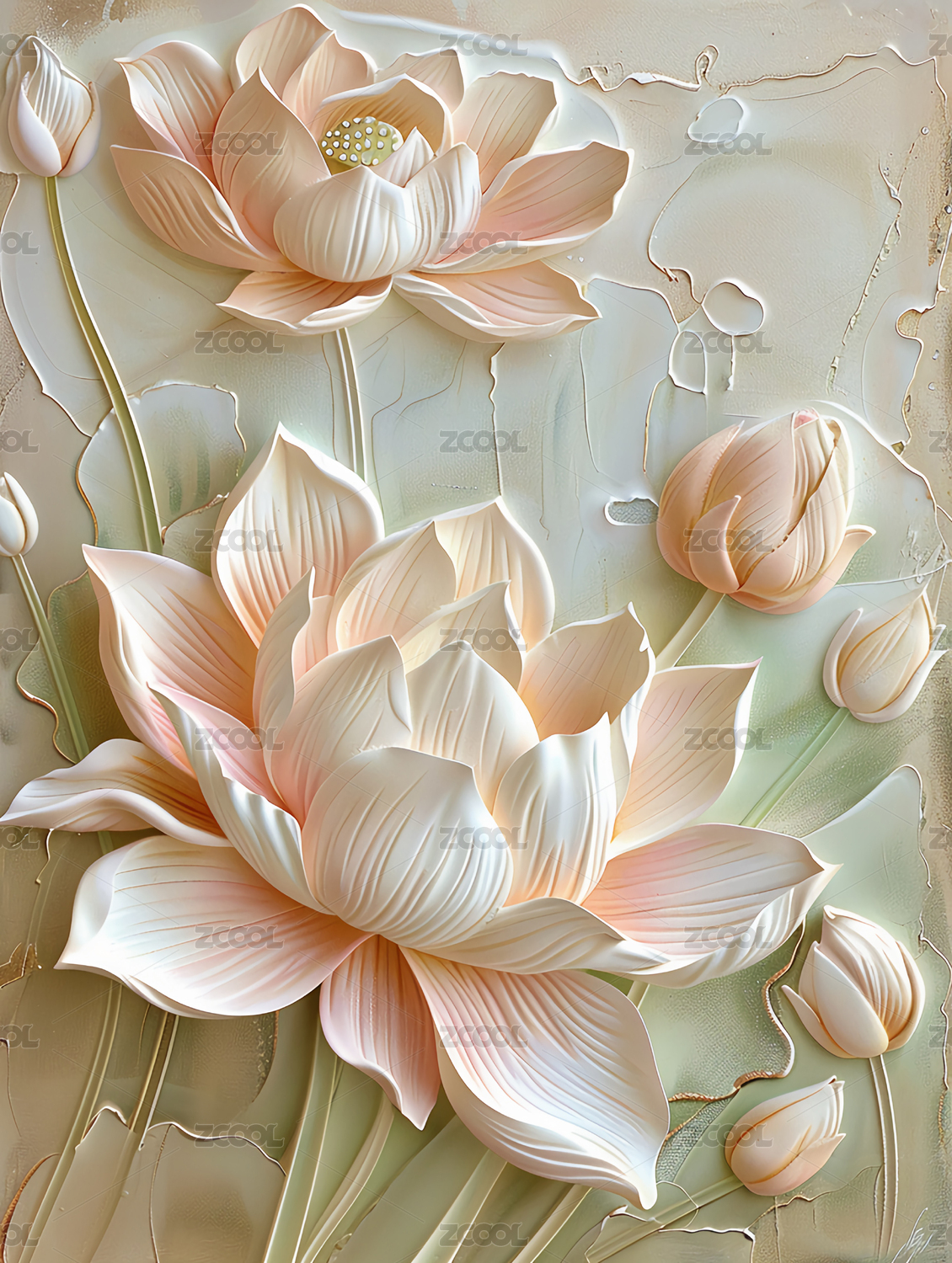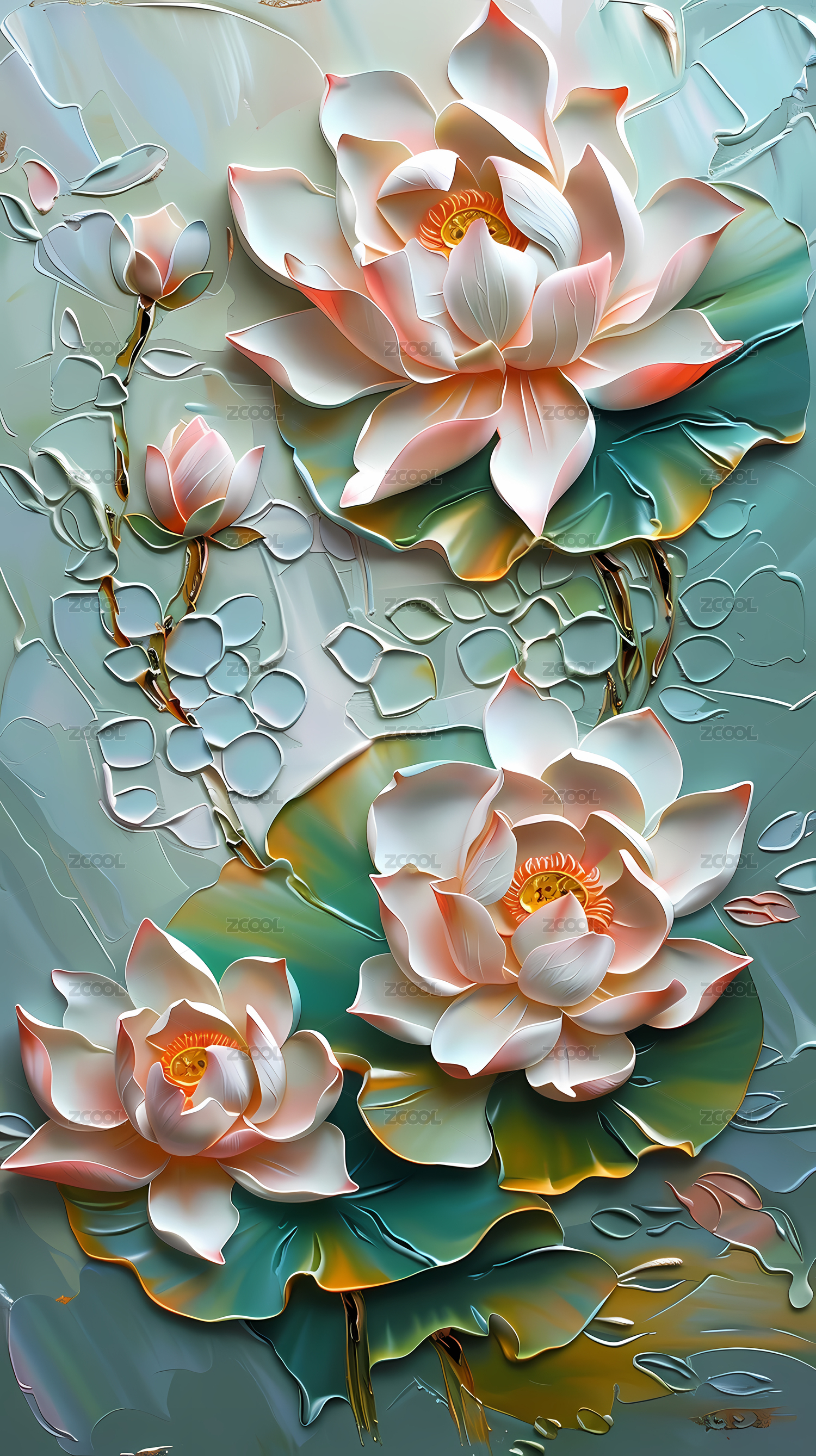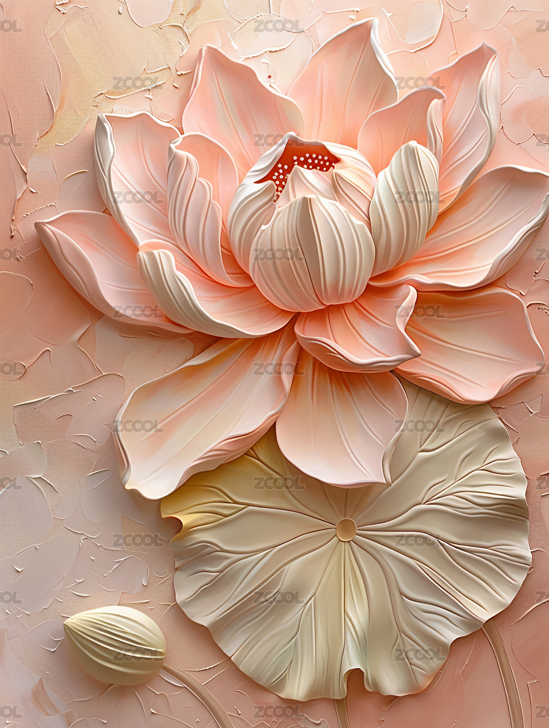 花卉,荷花,荷叶,粉色,油画,清新,唯美,浪漫,肌理,质感