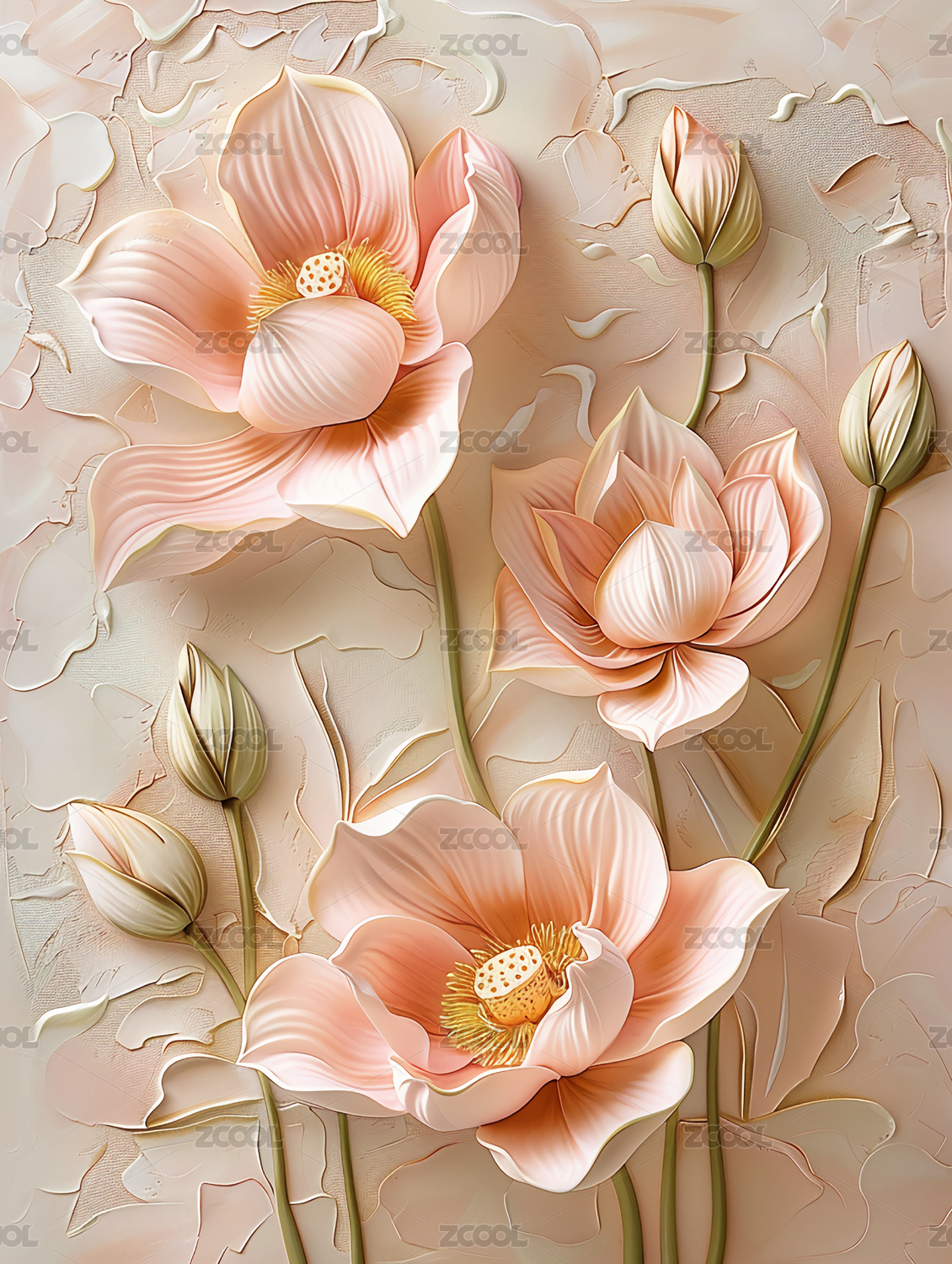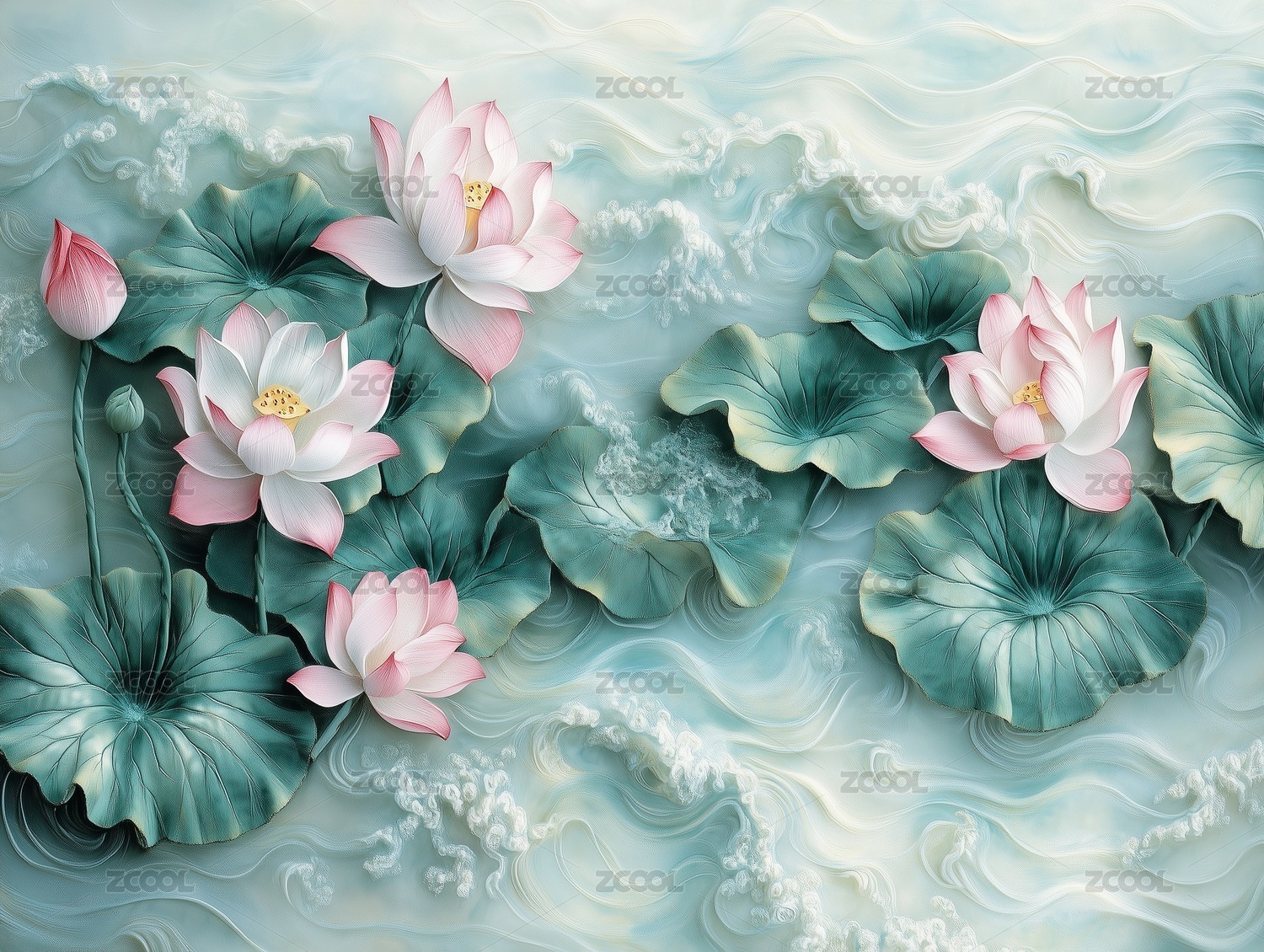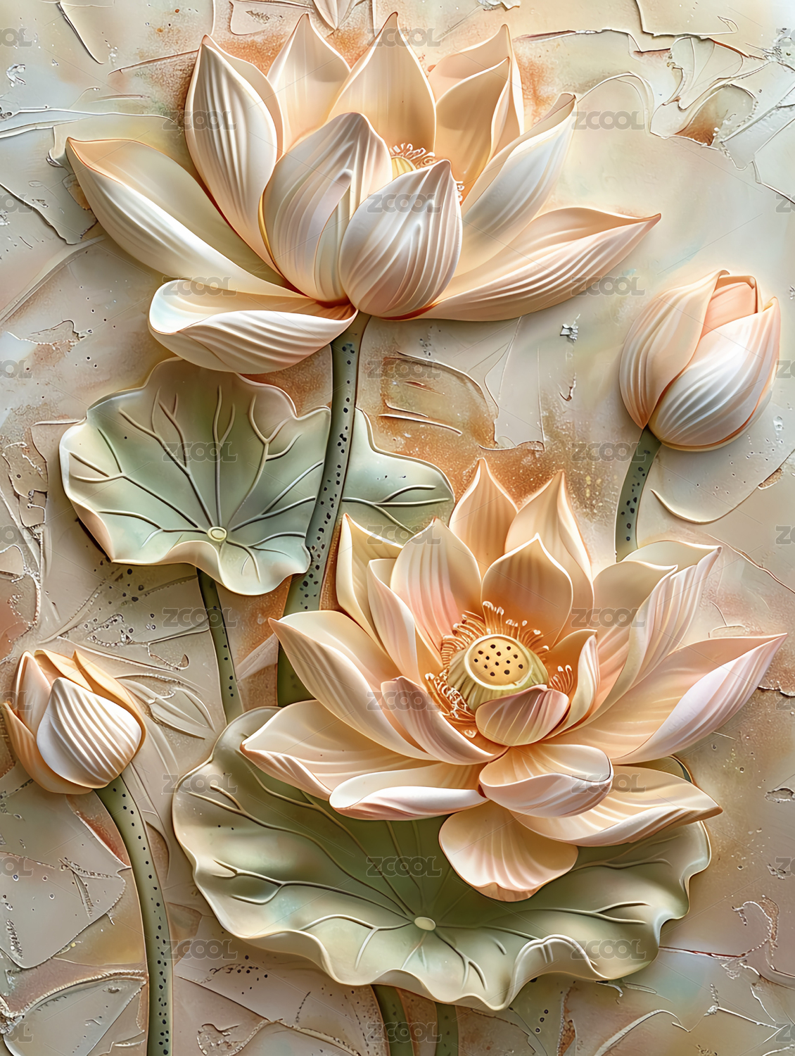 花卉,荷花,荷叶,粉色,油画,清新,唯美,浪漫,肌理,质感
