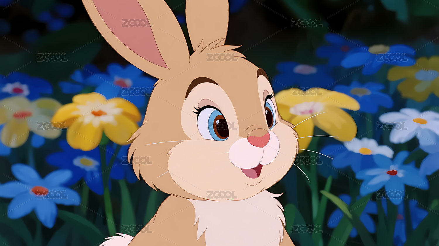 浅棕兔子花丛中
