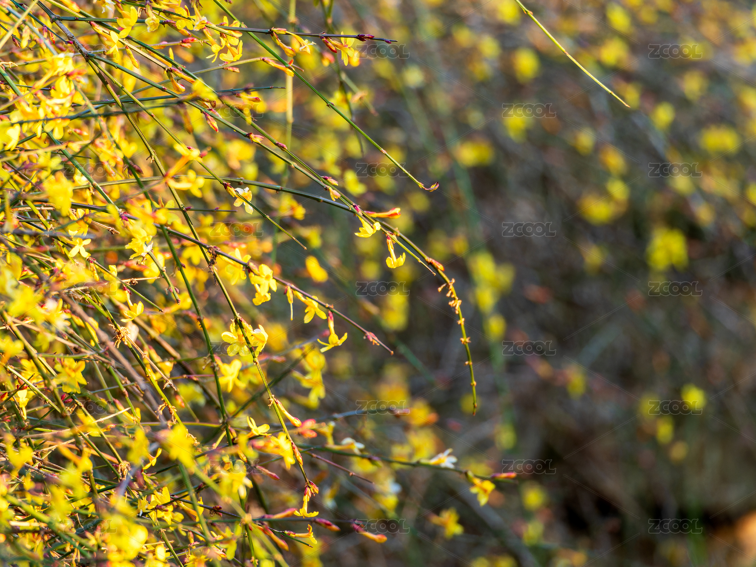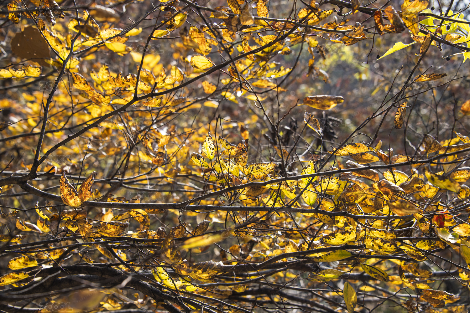 清晨温暖的阳光照耀在树木刚张出来的嫩芽上
