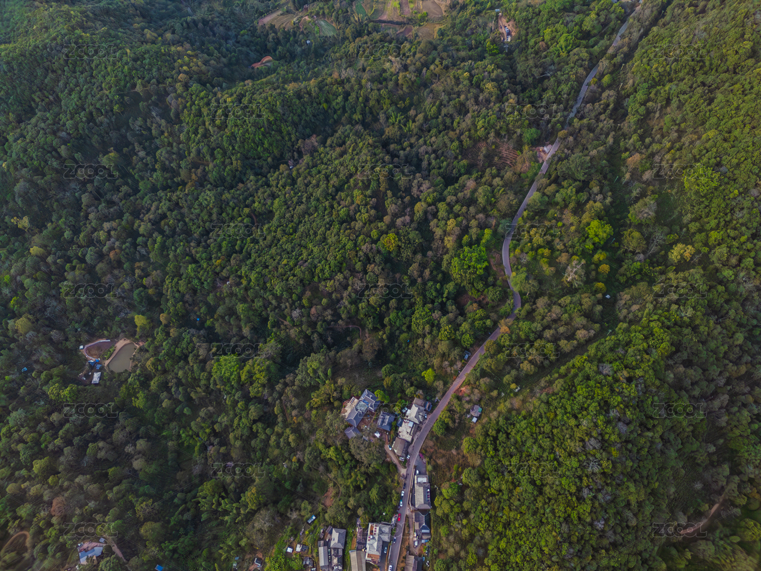 航拍视角俯瞰乡村蜿蜒曲折的公路