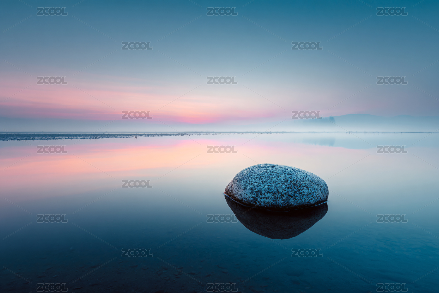 宁静水面的孤石