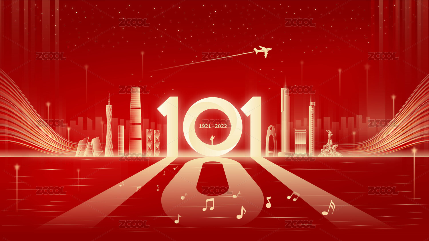 101周年,101,七一,插画,党建,文化,城市,发展,矢量,红色