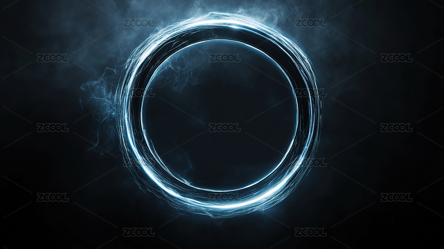 黑色背景下被照亮的蓝色烟雾的特写镜头