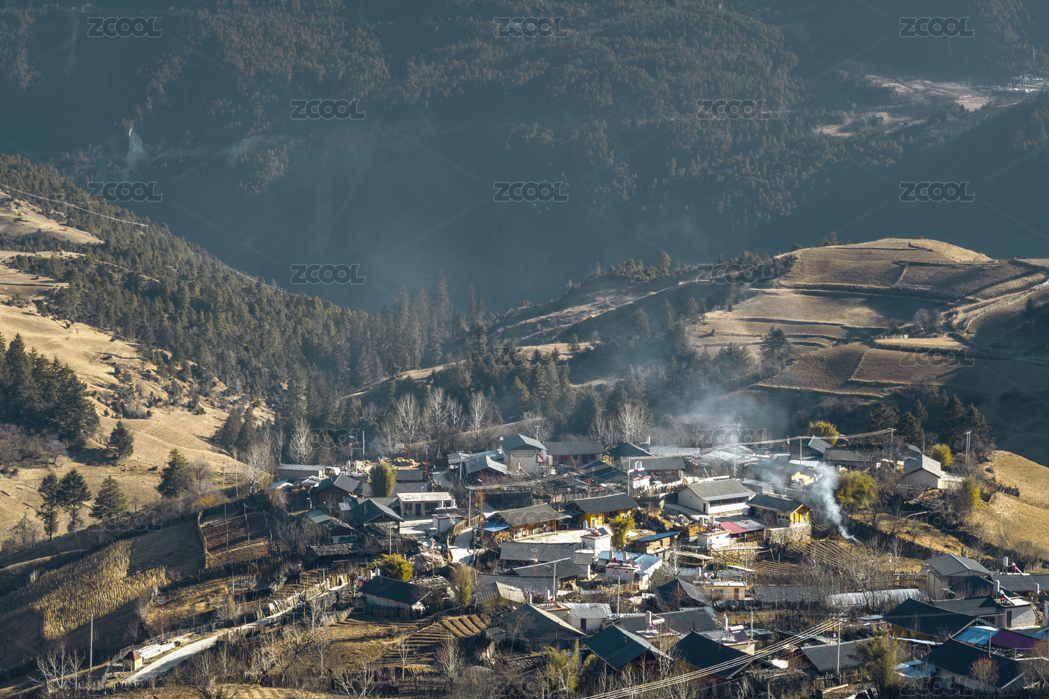 中国四川省阿坝州阿坝县麦尔玛镇航拍