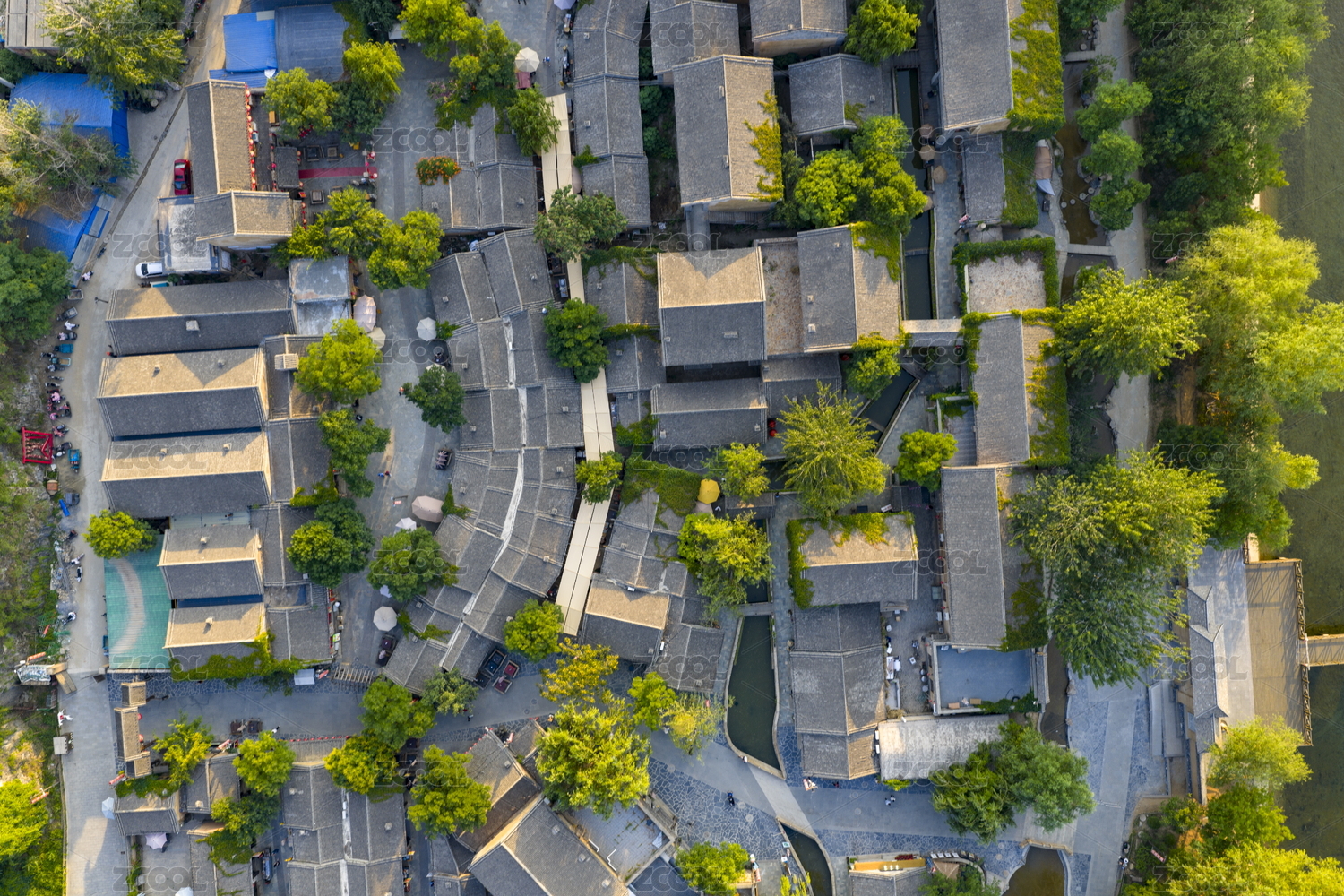 中国江苏省新沂市航拍窑湾古镇园林建筑