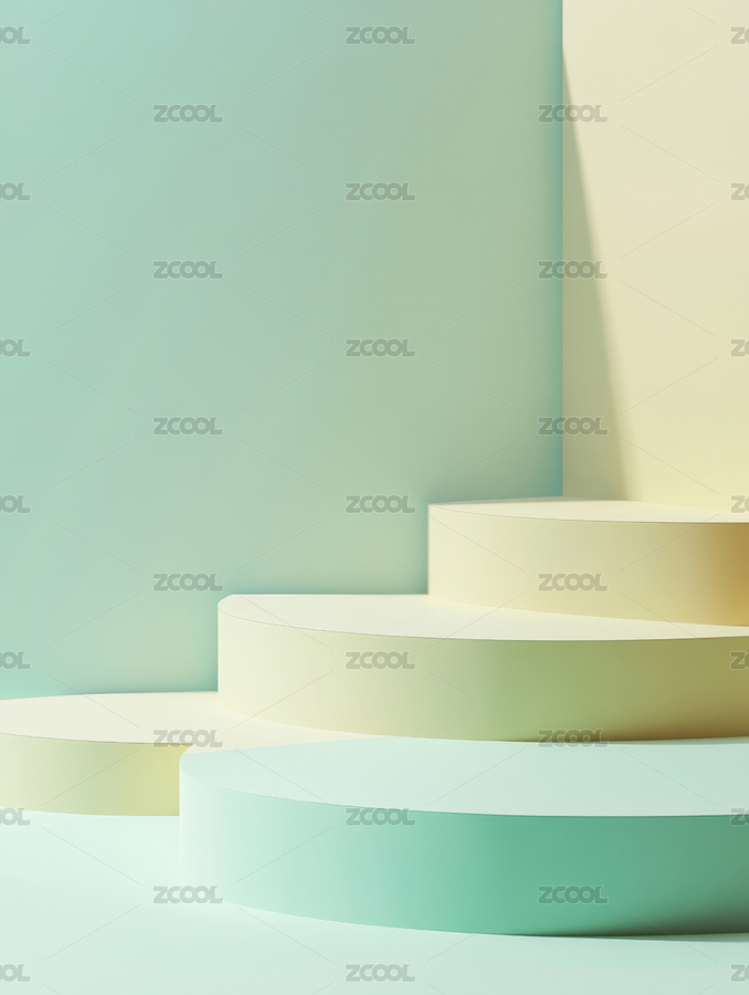 梦幻粉蓝渐变色展台底座电商3D效果图
