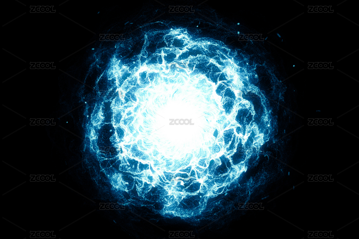 球形蓝色火花能量球 3D渲染