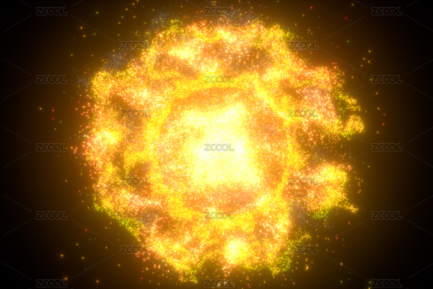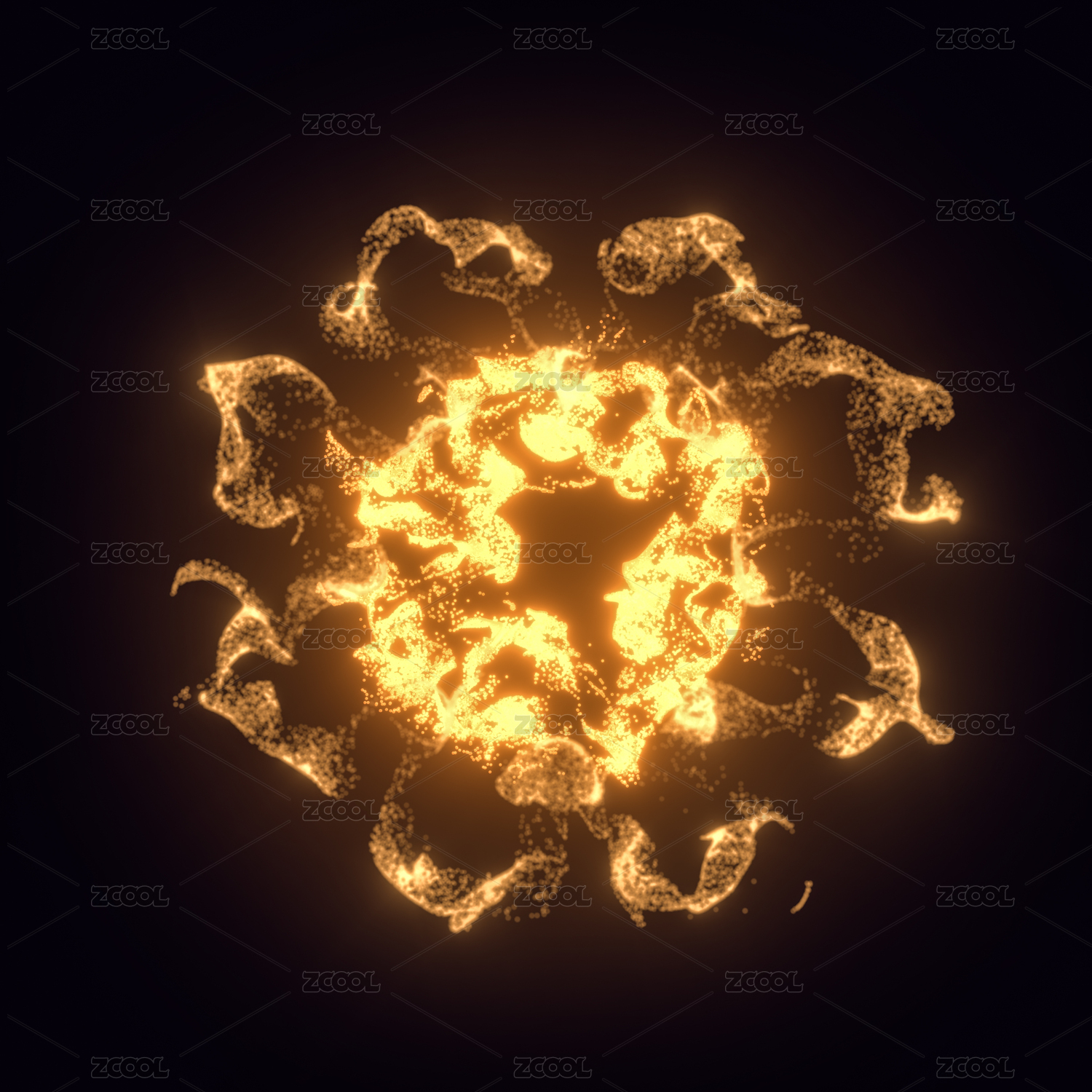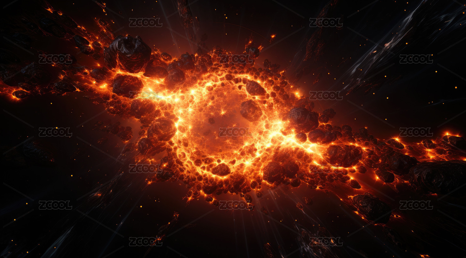 图像黑色表面爆发 橙色光芒渲染