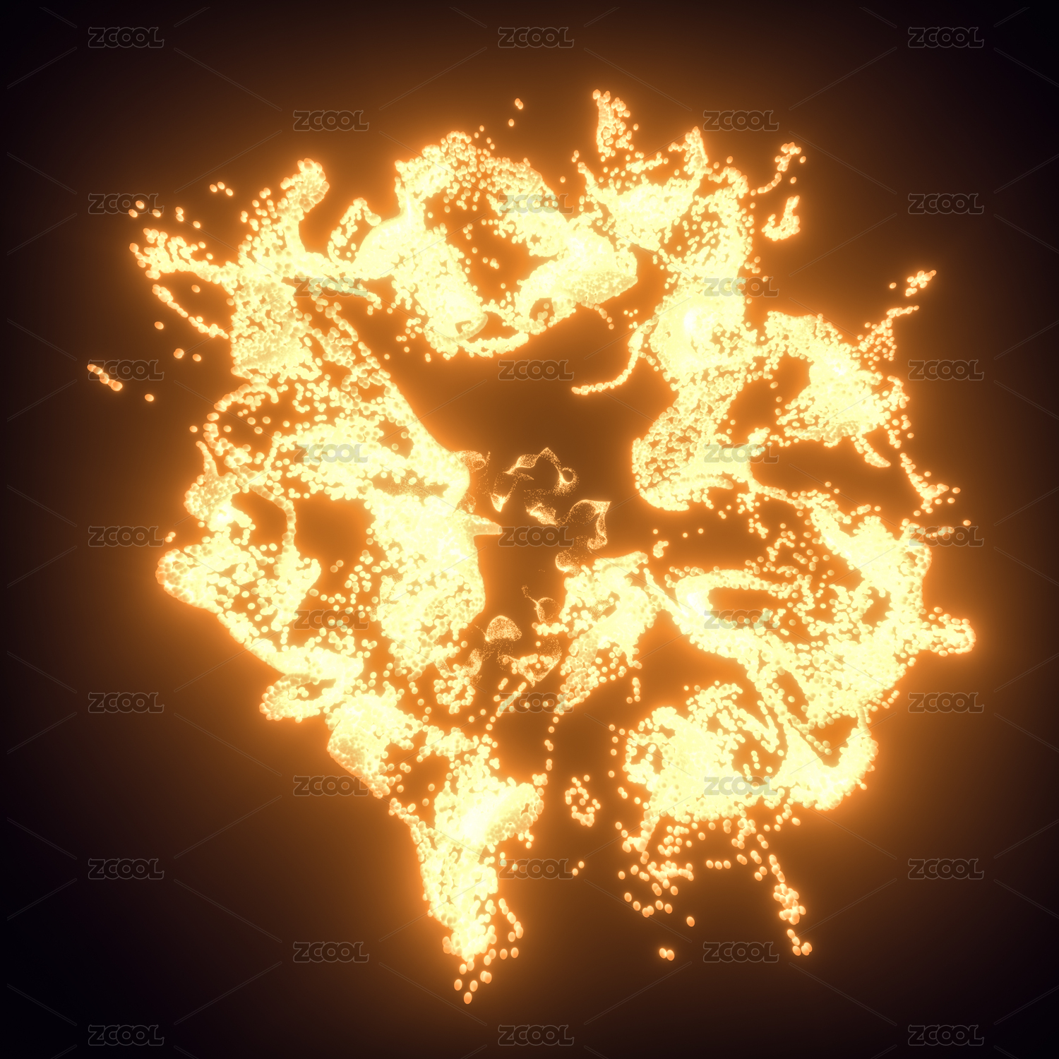闪耀的燃烧粒子 抽象火焰背景 三维渲染
