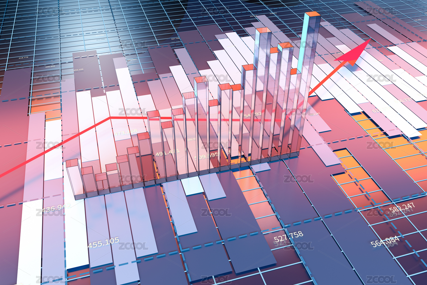 3D渲染,三维,分析,图表,基金,市场,投资,折线,插画,数据