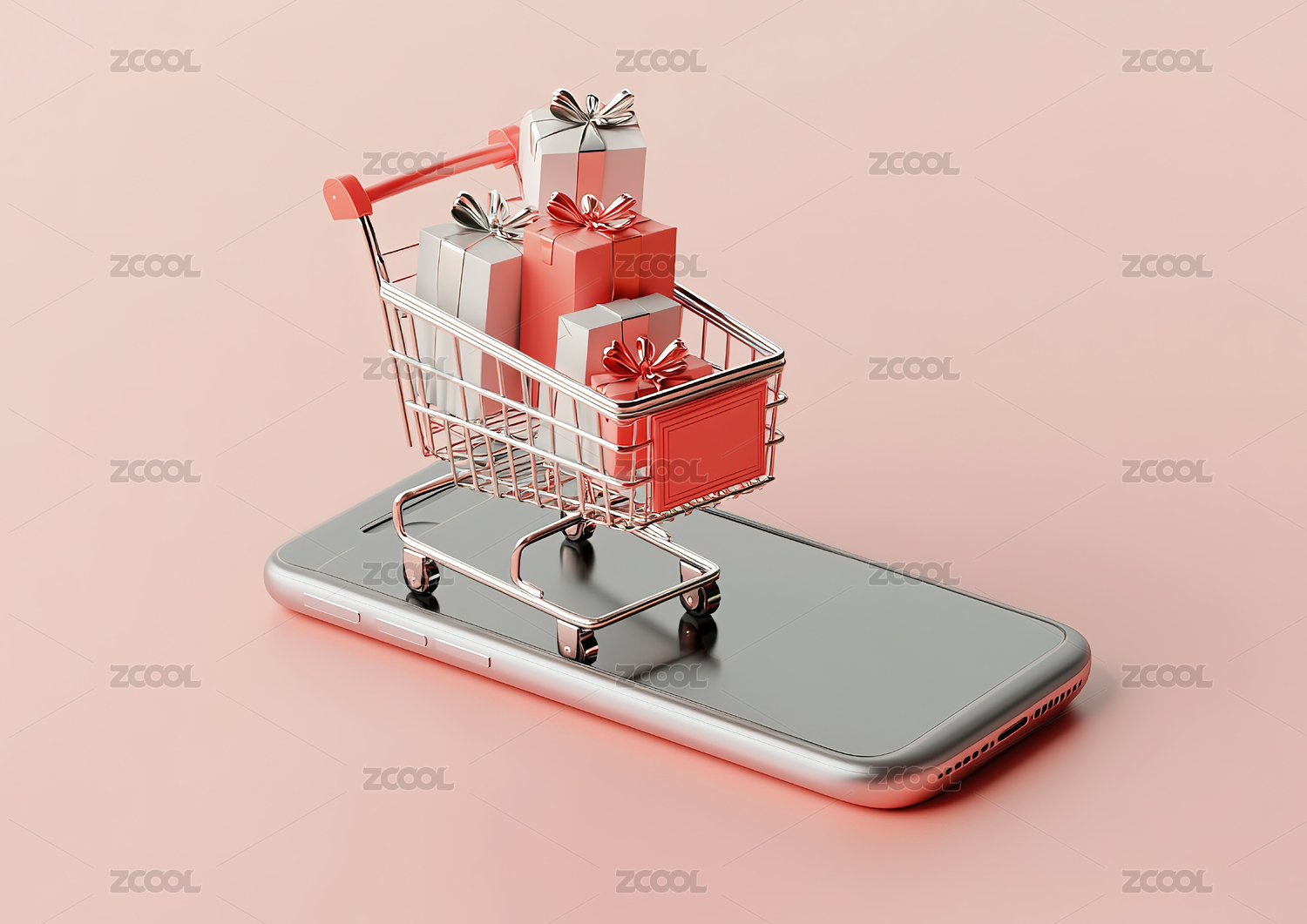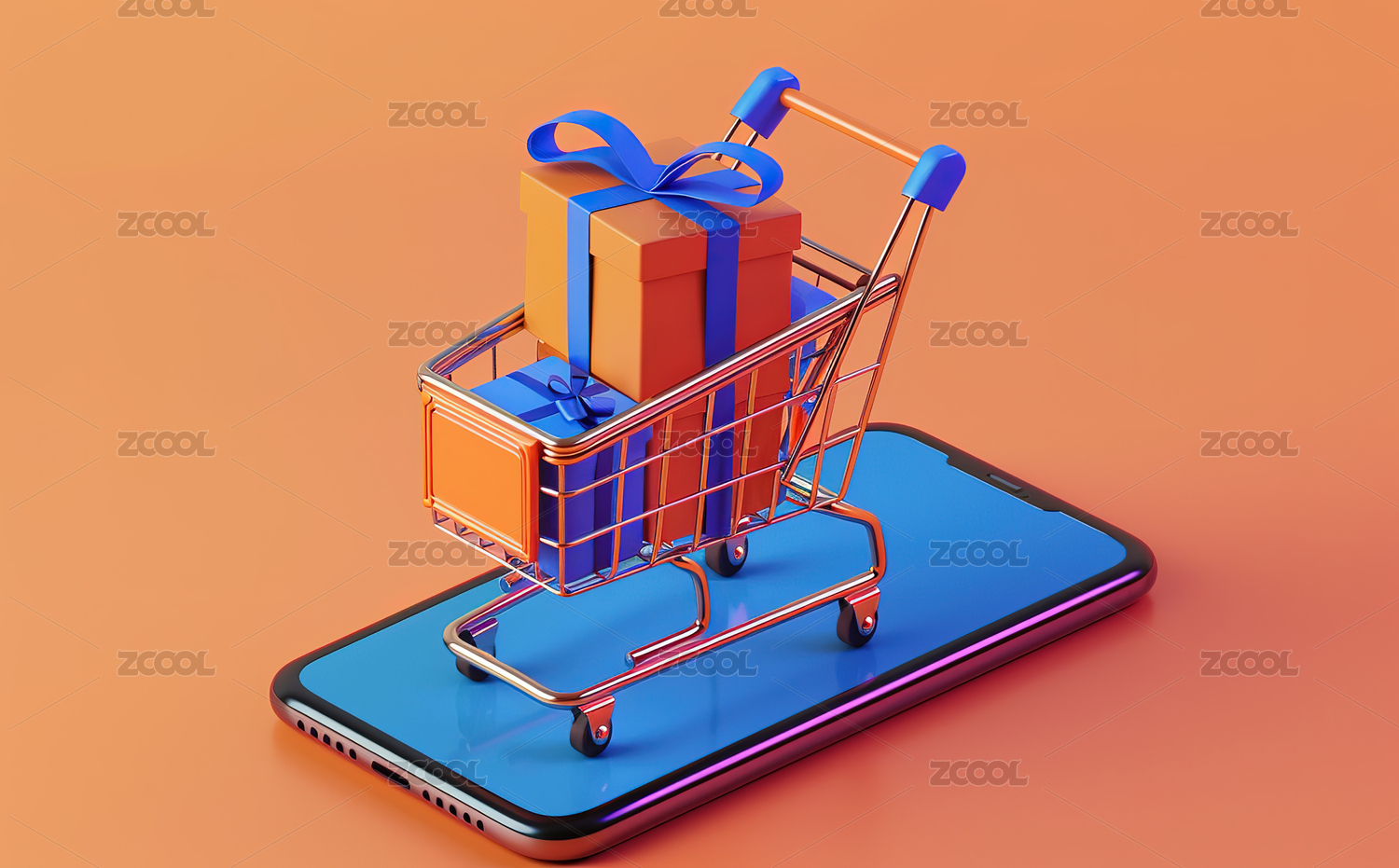 3D,插画,卡通,商业,消费,购买,购物,电商,购物车,付款