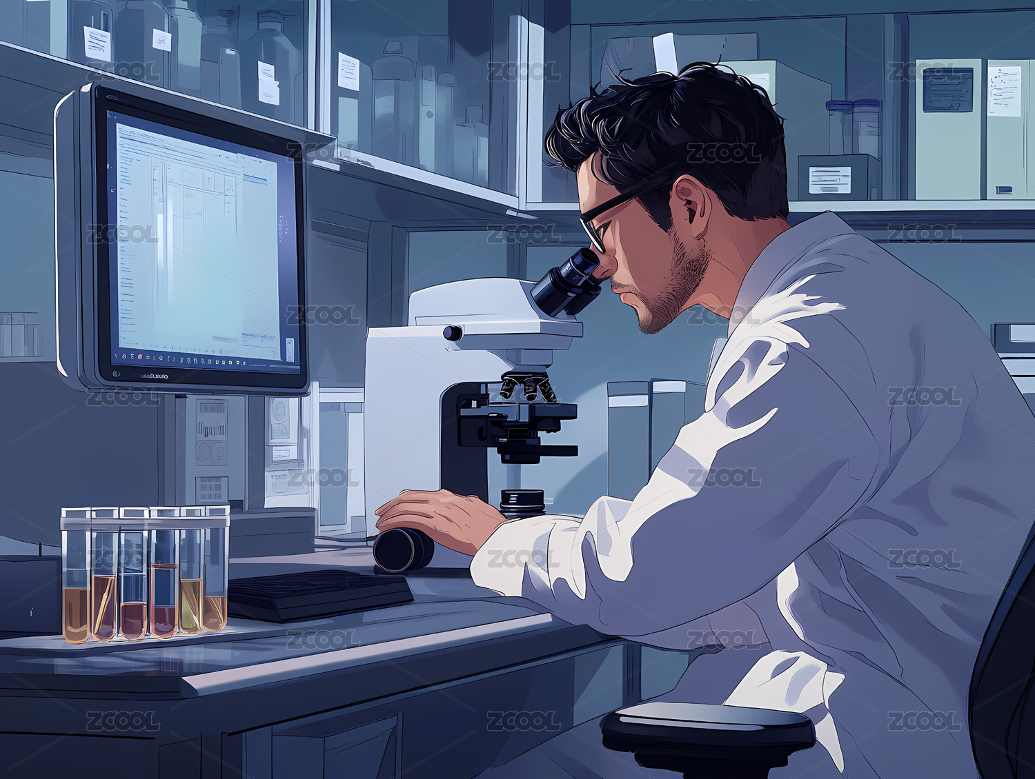 男性科研工作者插画