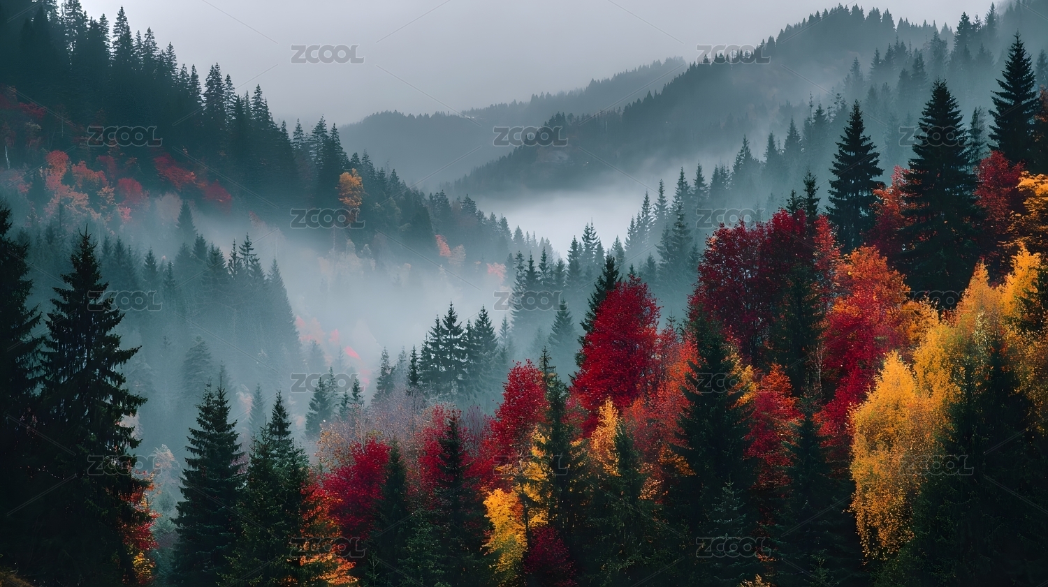 中国新疆喀纳斯禾木村秋色云雾缭绕
