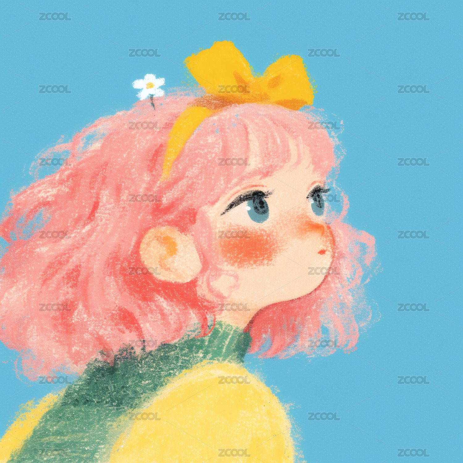 蝴蝶结,小姑娘,板绘,彩铅风格,对称,女孩,人物,头像