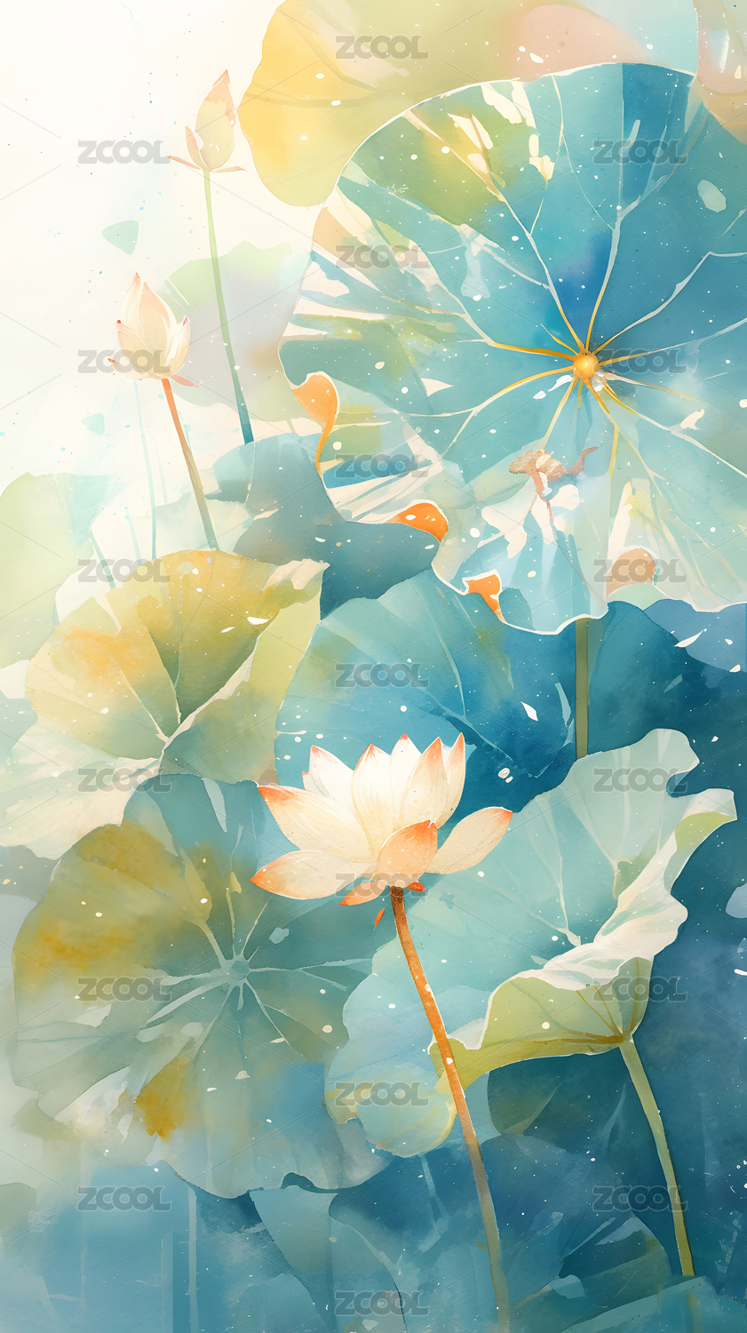 夏天水墨简约荷花风景