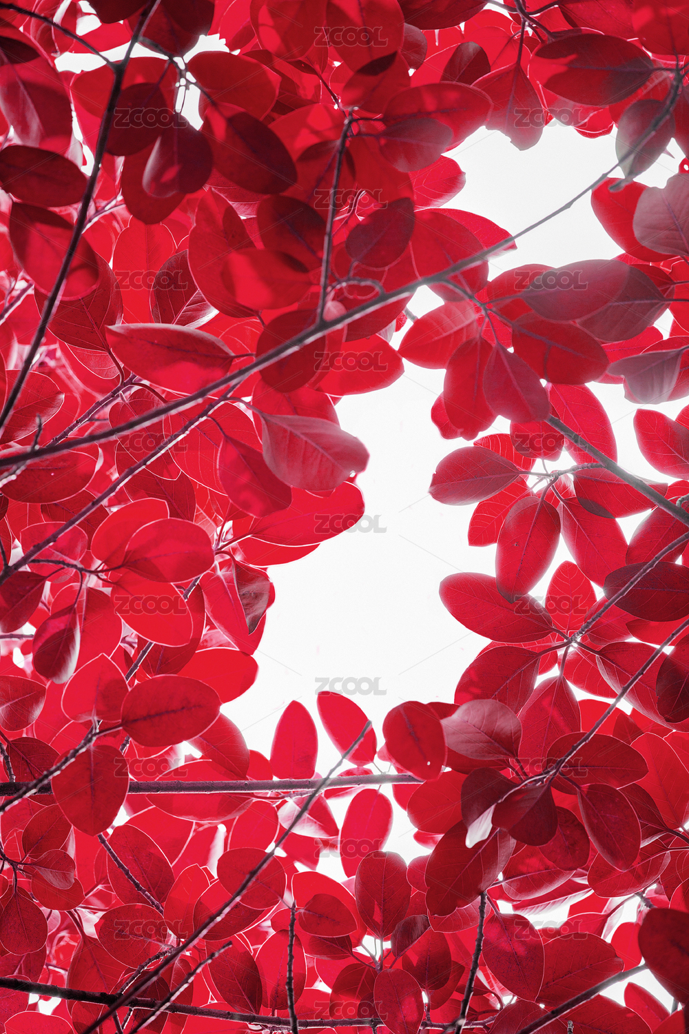 红黄枫枝叶伴野繁花溪流温馨氛围秋日