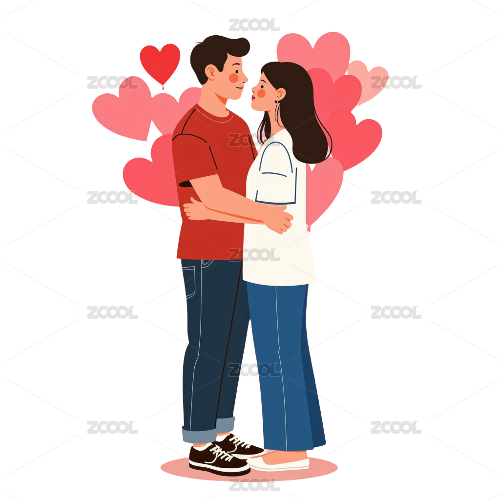 情侣接吻拥抱温馨浪漫爱情简易线稿插画