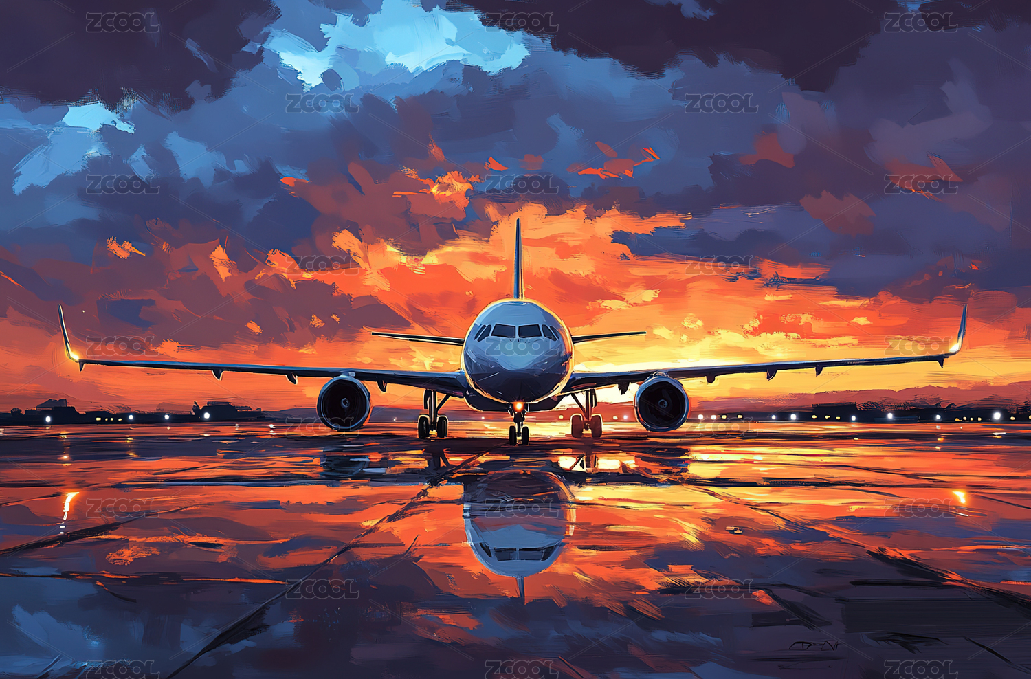 机场跑道飞机起飞航空运输旅游出发商务背景