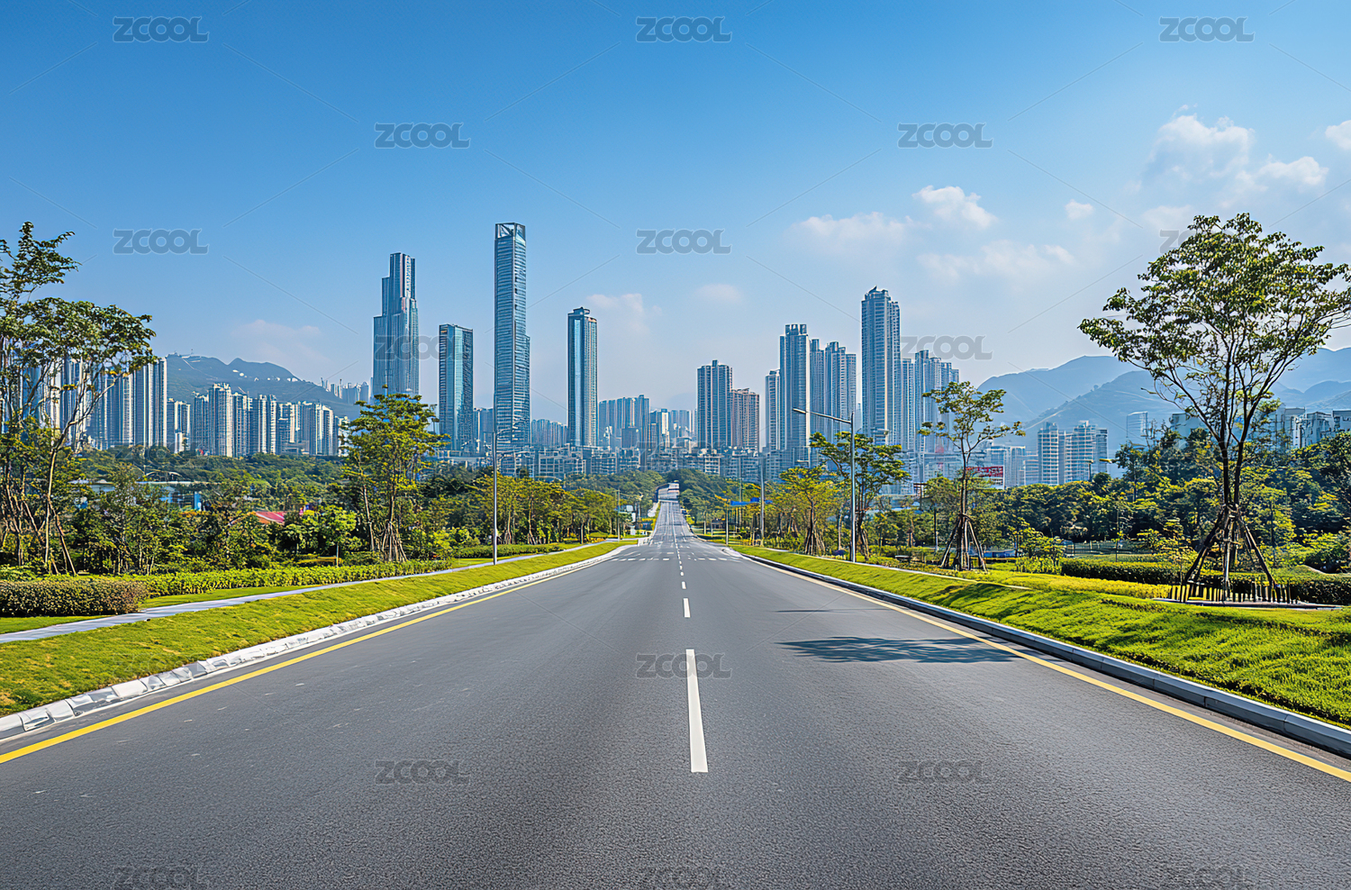 沥青高速公路和深圳城市现代建筑