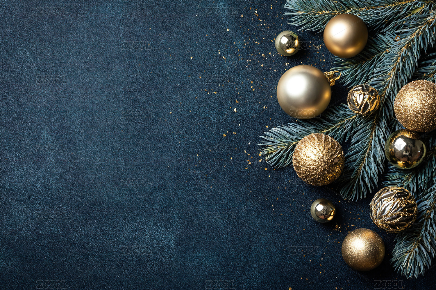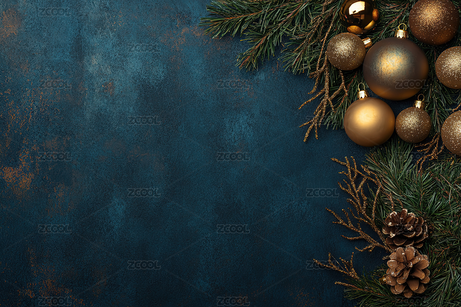 正上方蓝色背景下圣诞装饰的照片
