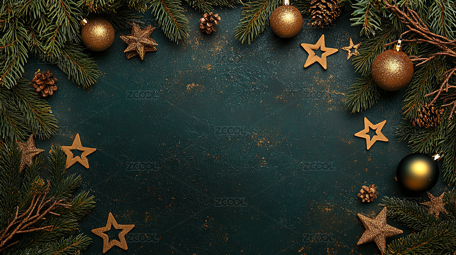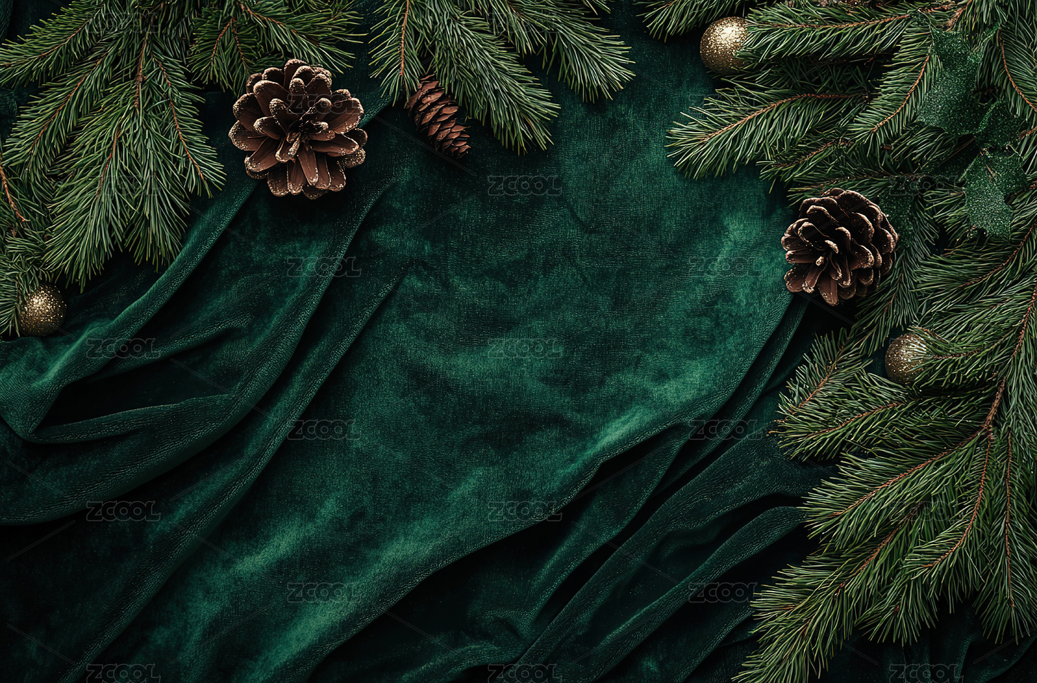 正上方绿色背景下的圣诞装饰品
