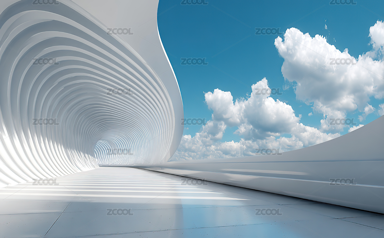 现代建筑隧道与蓝天白云