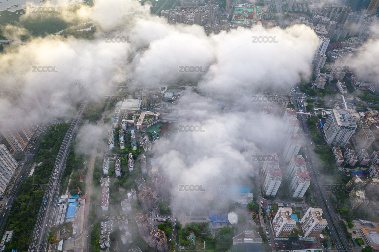 暴雨过后云海笼罩下的无锡市城市建筑风光