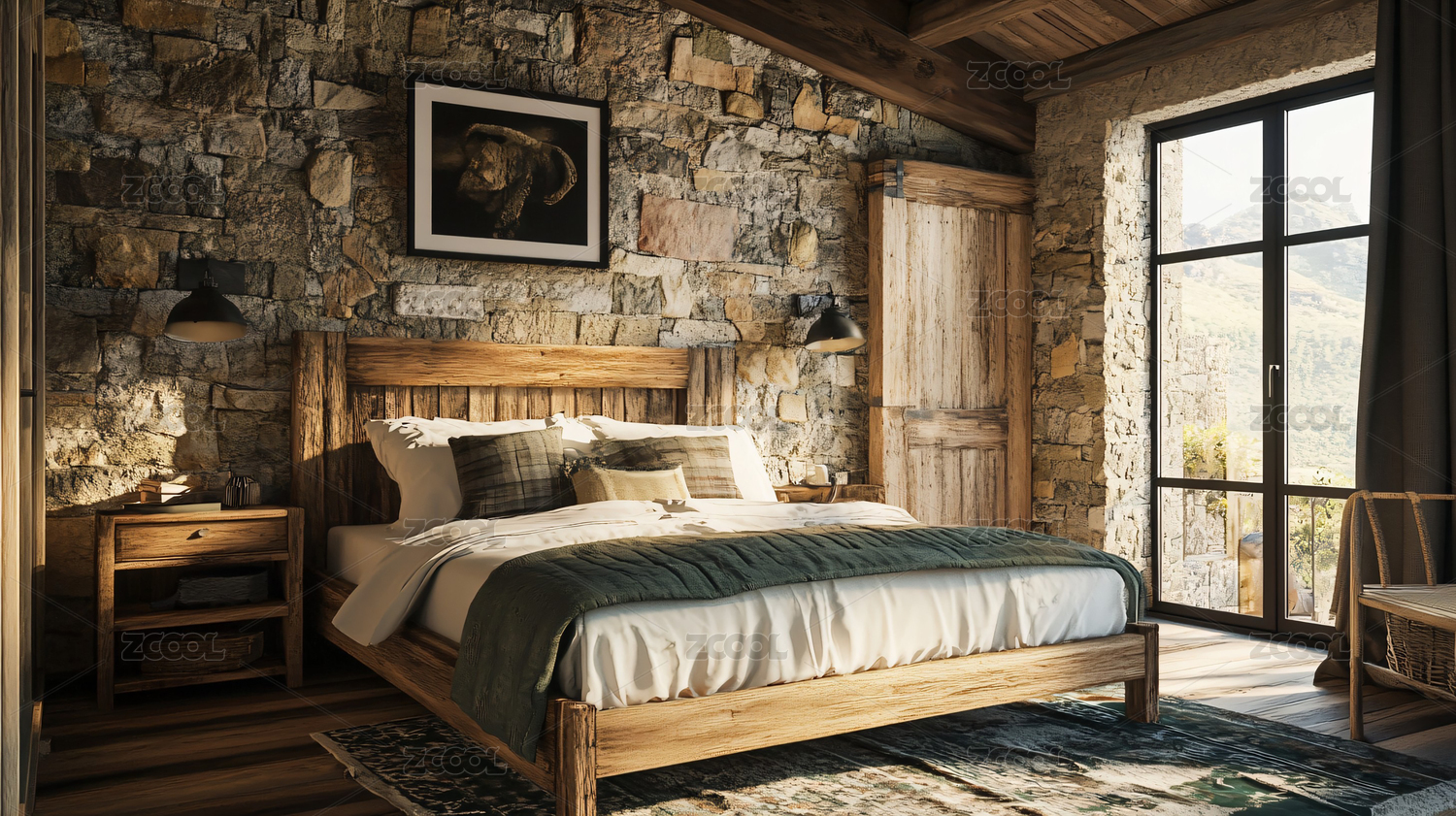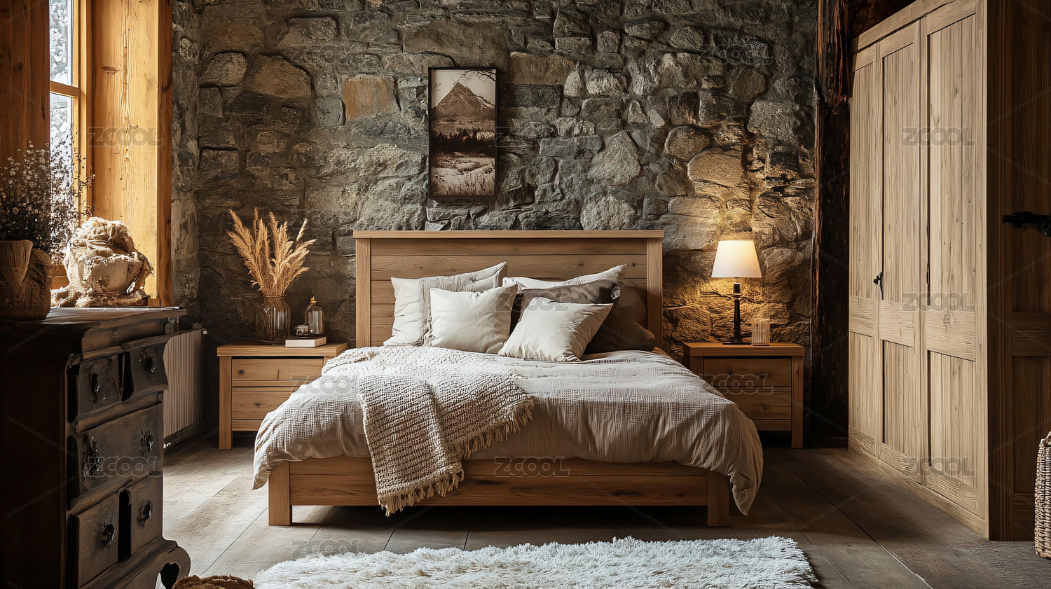 自然风格的温馨木质卧室