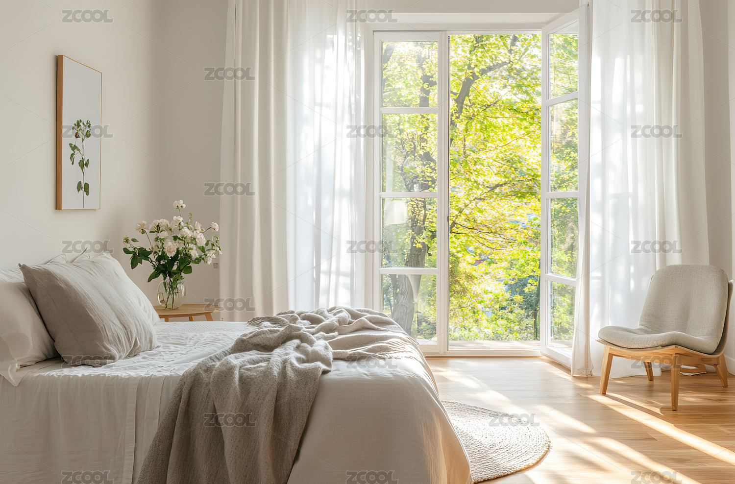 现代简约卧室自然光与绿植点缀