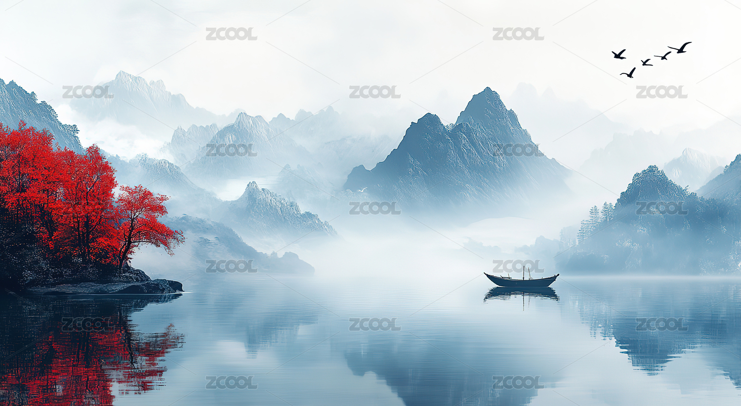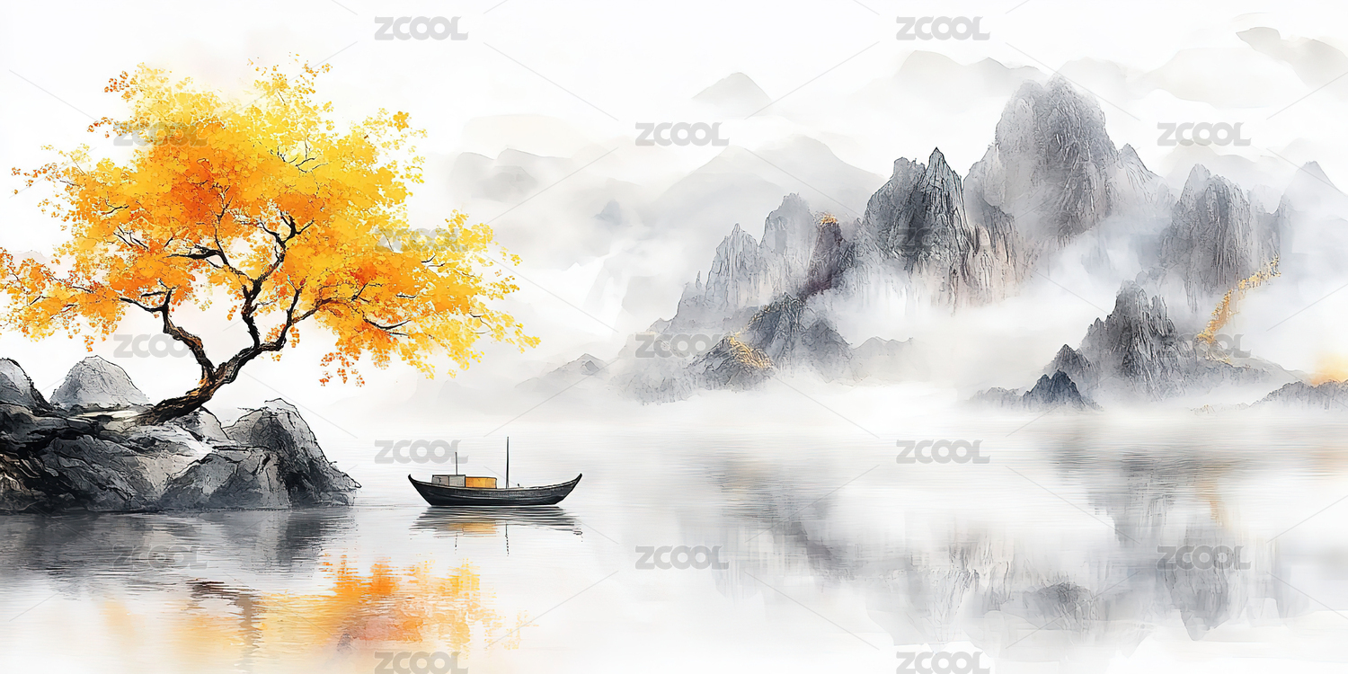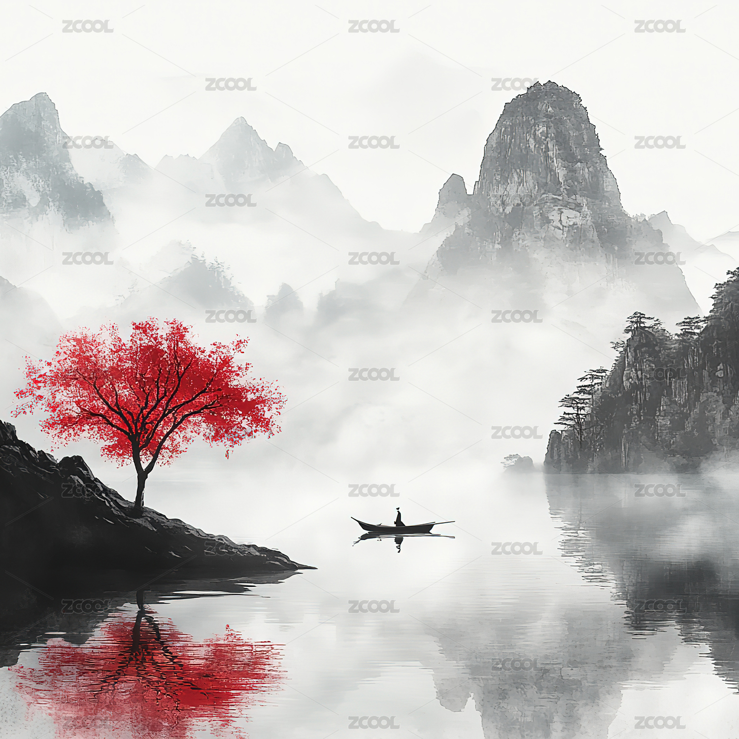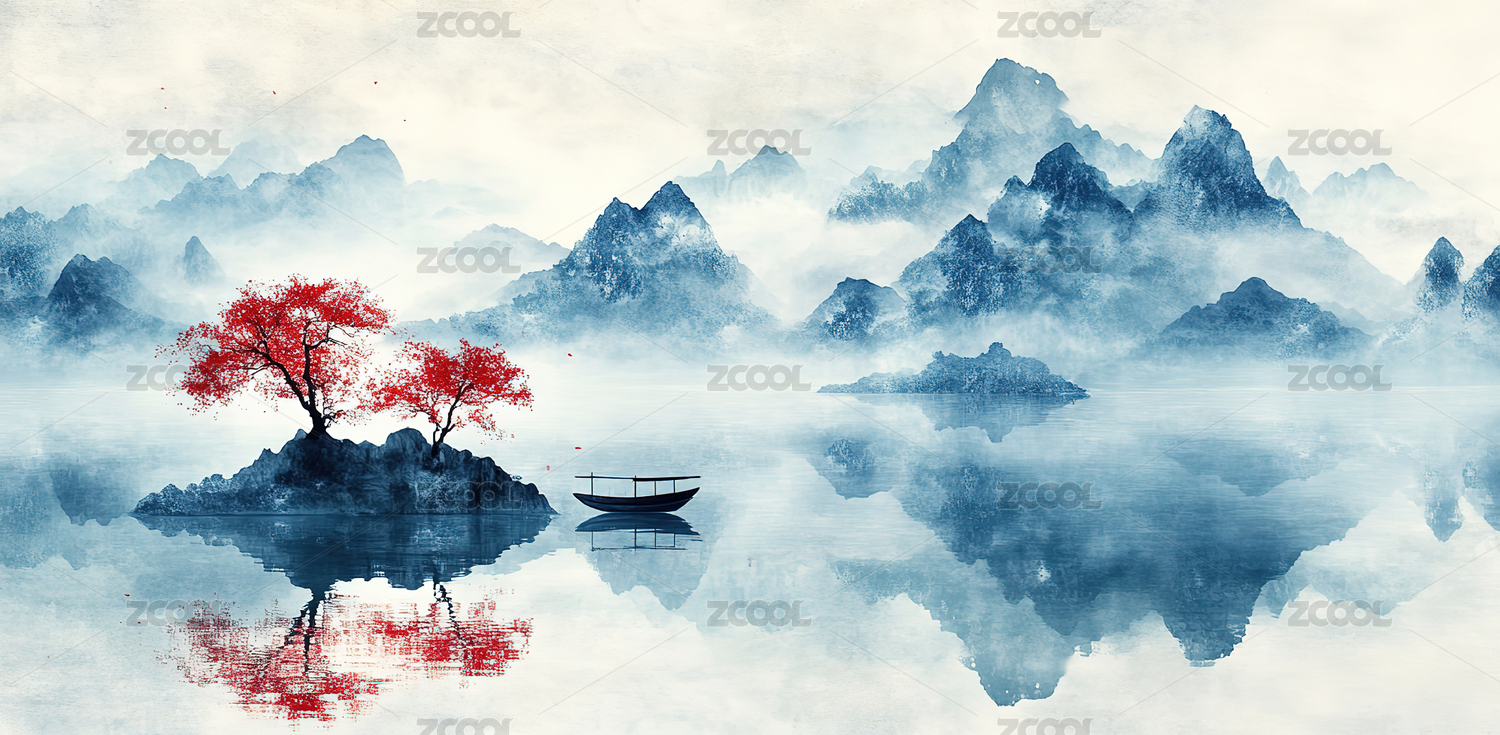 自然,天空,高山,自然美,插画,中国文化,水墨画,无人,云,AI数字艺术