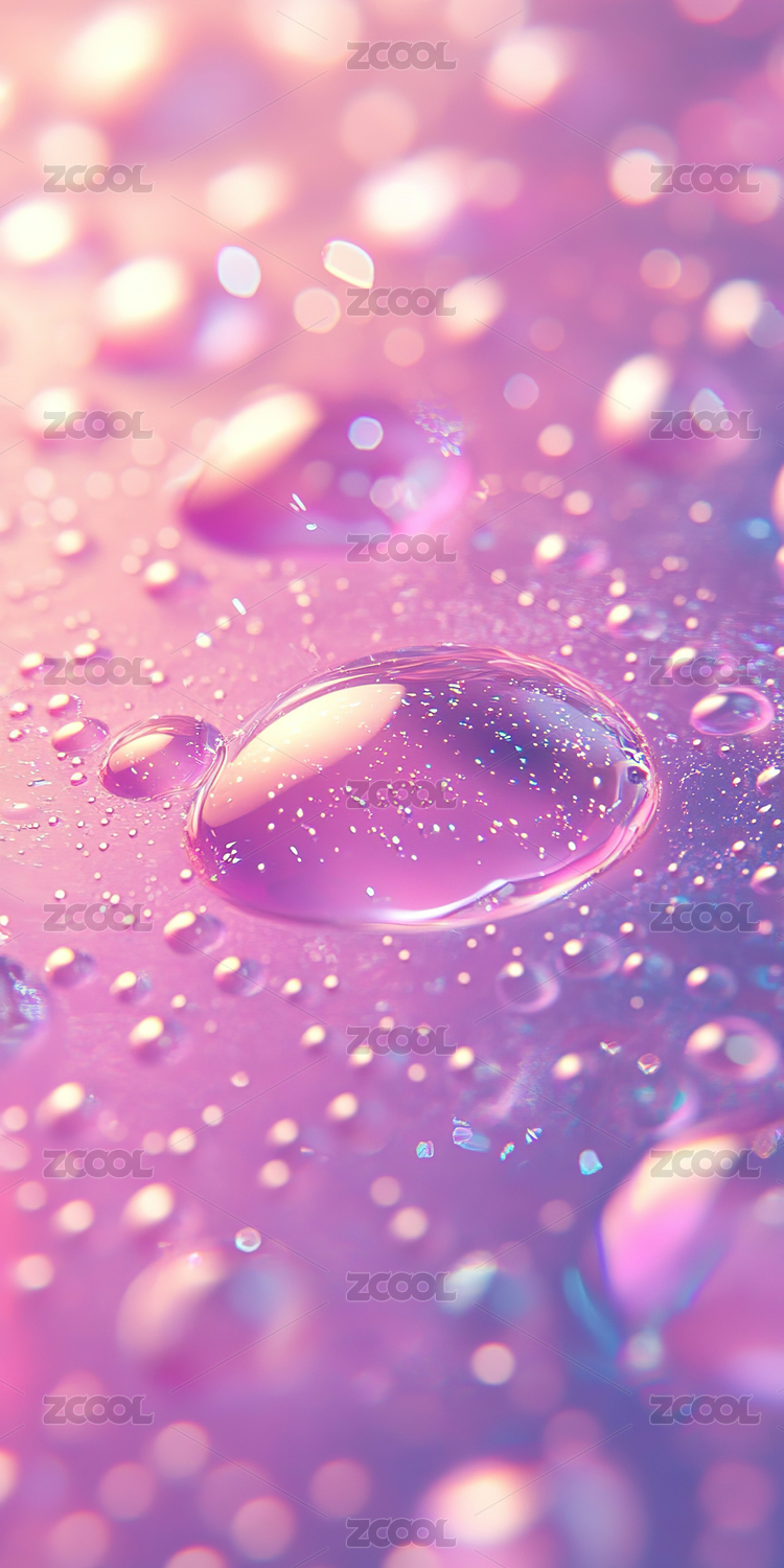 水滴在紫色与粉色背景下的抽象图案