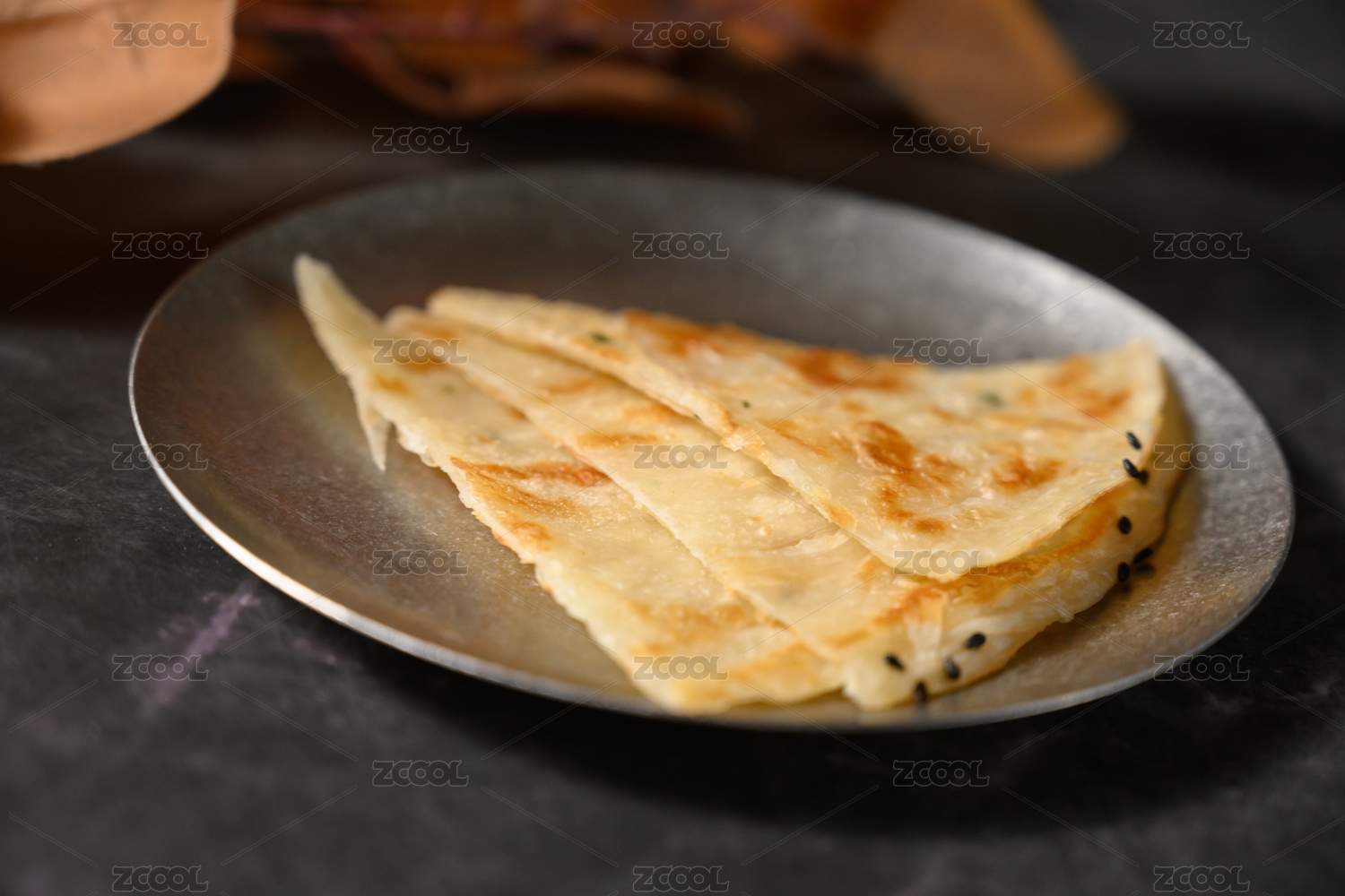 一盘葱油饼放在灰色底板上