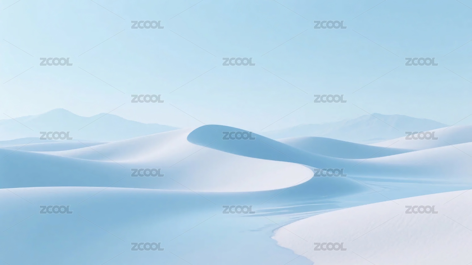 超现实主义起伏不断的白色沙丘和湛蓝天空