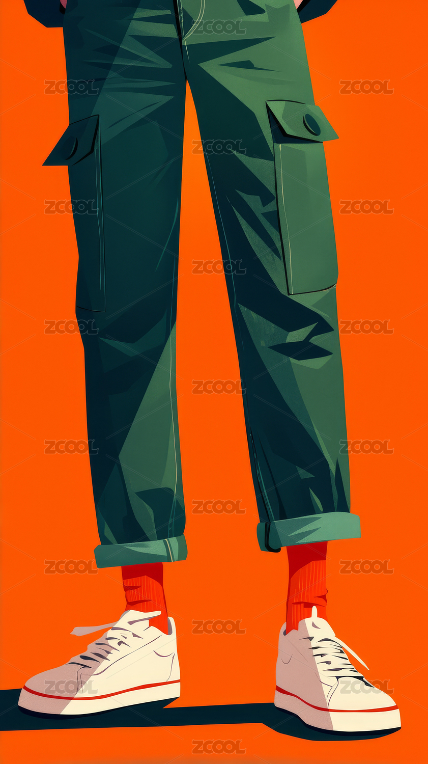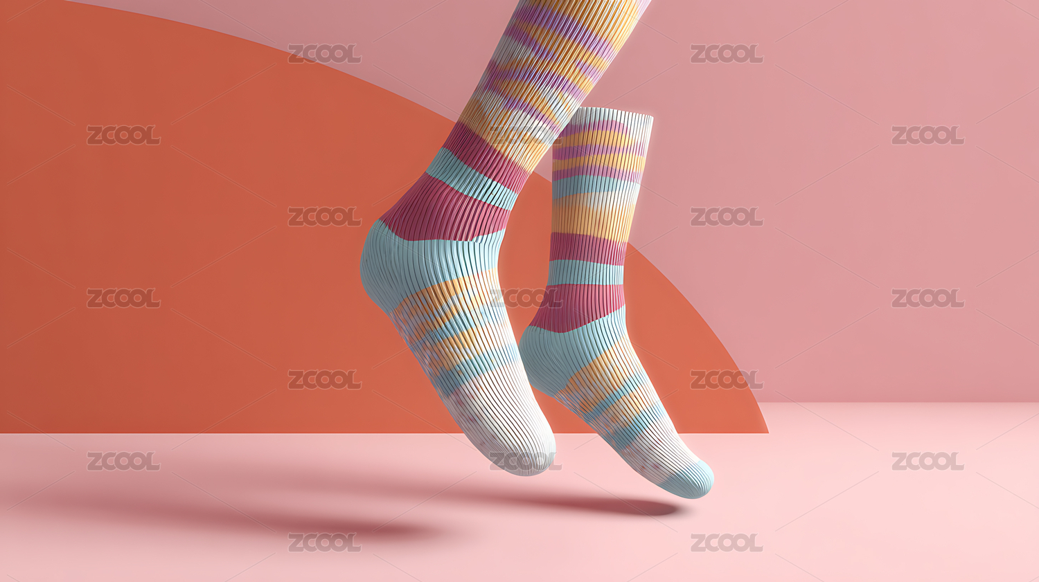 简单明亮脚上一双彩色条纹的长筒袜绘画插画