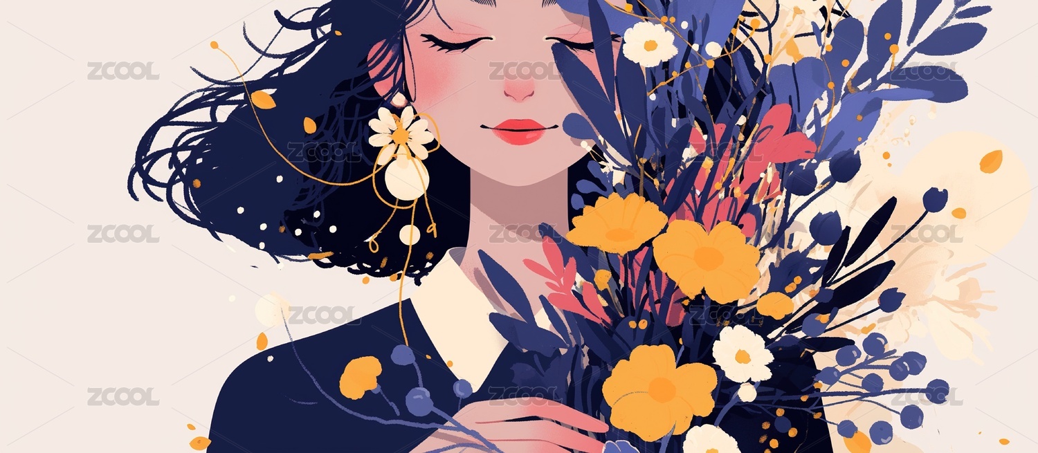 扁平风花朵和女孩