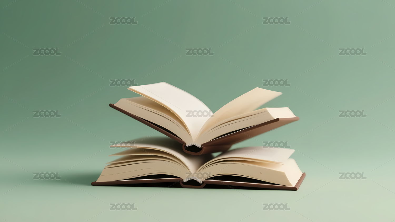 清新,明亮,纯色,桌面,上,翻开,书,3D,立体,插画