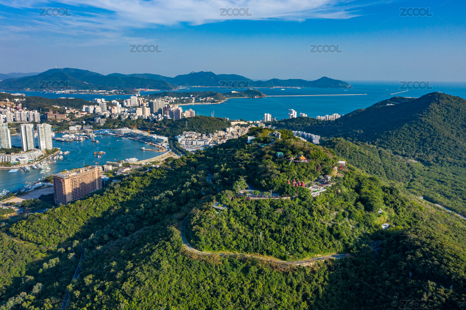 航拍海南三亚鹿回头半岛鹿回头风景区山林