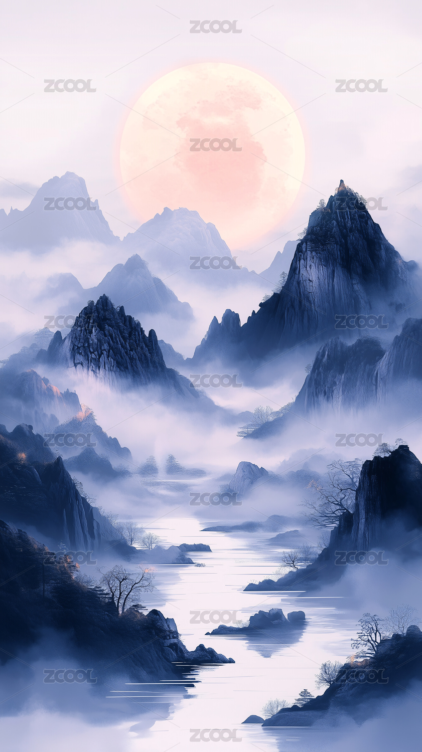 竖版新中式山水风景