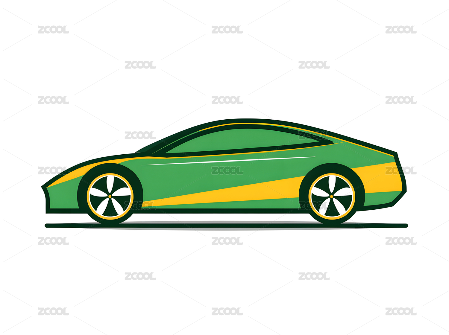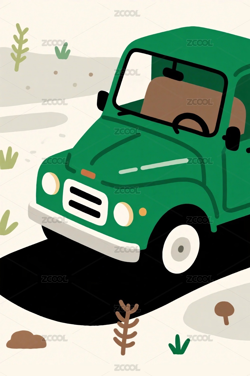 绿色小车卡通插画