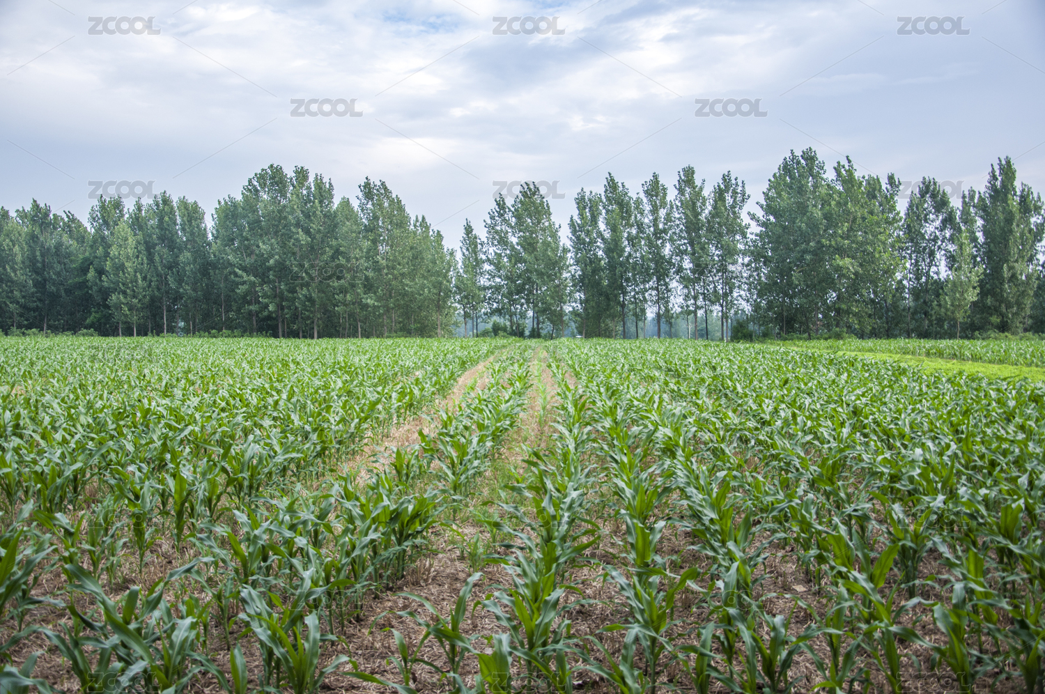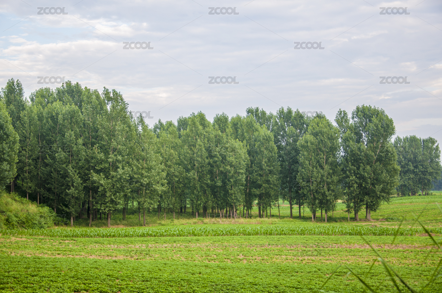 多云天气环境中的树木和农田