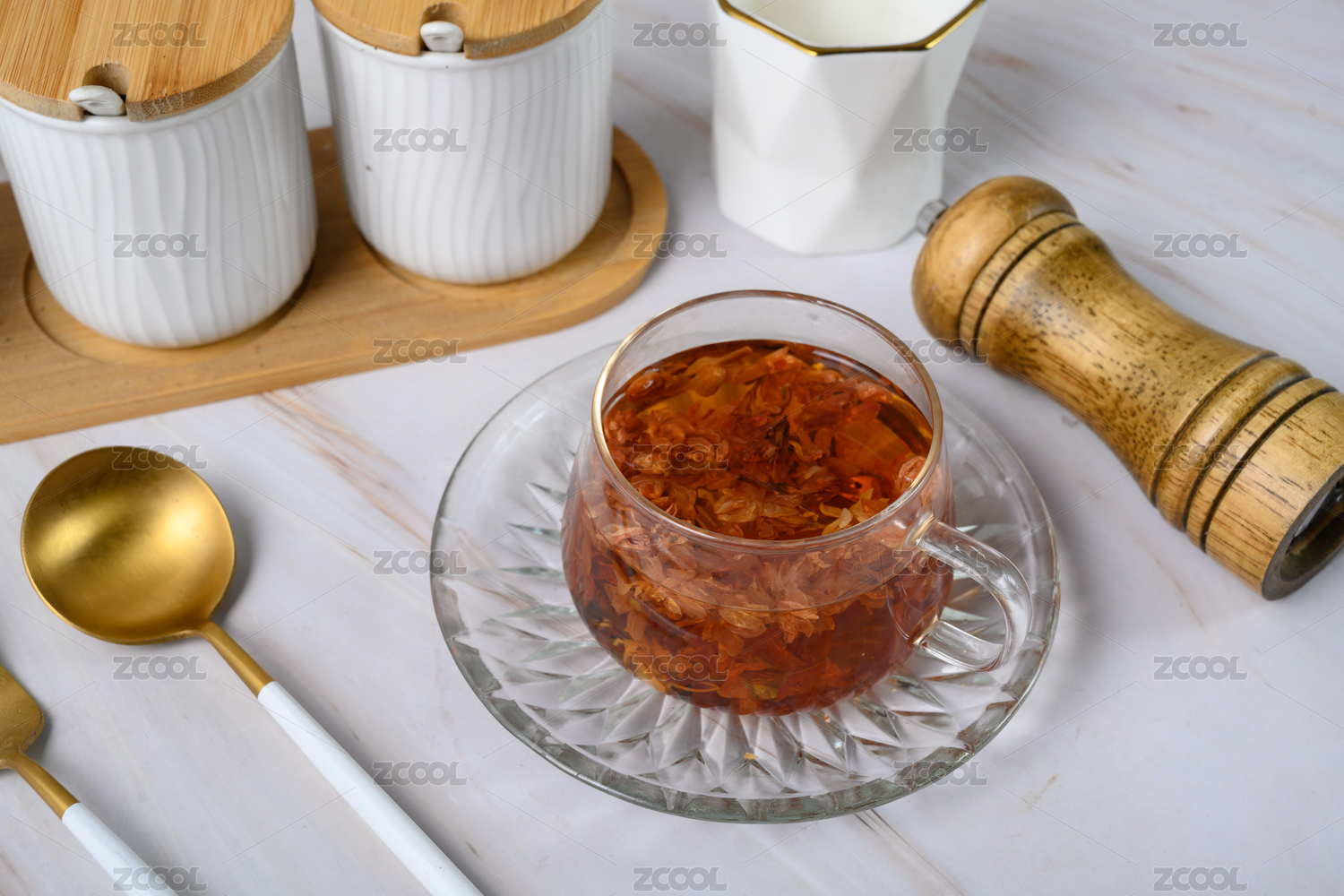 桌面上的杯子里甘甜可口的酸枣仁茶
