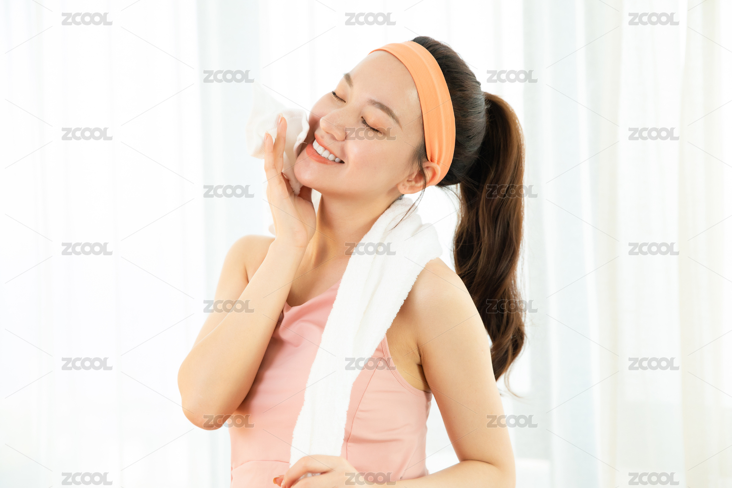 健身后擦汗的亚洲少女